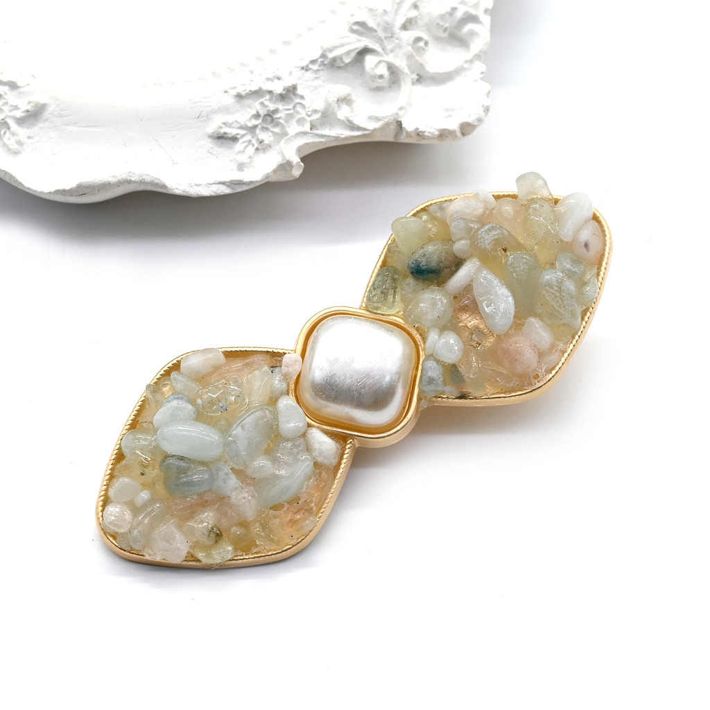 Материал: Лунный камень-беломорит Натуральность: Натуральный камень Месторождение: Шри-Ланка •Заколка зажим с крошкой натурального лунного камня (Адуляр) и майоркой. •Металлический зажим для волос – н... Показать описаниеезаменимый аксессуар для создания стильного образа! •Зажим выполнен из прочного материала, обеспечивающего надёжную фиксацию даже объёмной причёски, позволяя создавать различные вариации укладок каждый день. •Подходит как для повседневного применения, так и для вечернего выхода. Прочный механизм гарантирует длительный срок эксплуатации без потери функциональности. •Габариты заколки: длина 6,5см, ширина 2,5см. •Габарит заколки ± 1мм. •Цена за 1 шт.