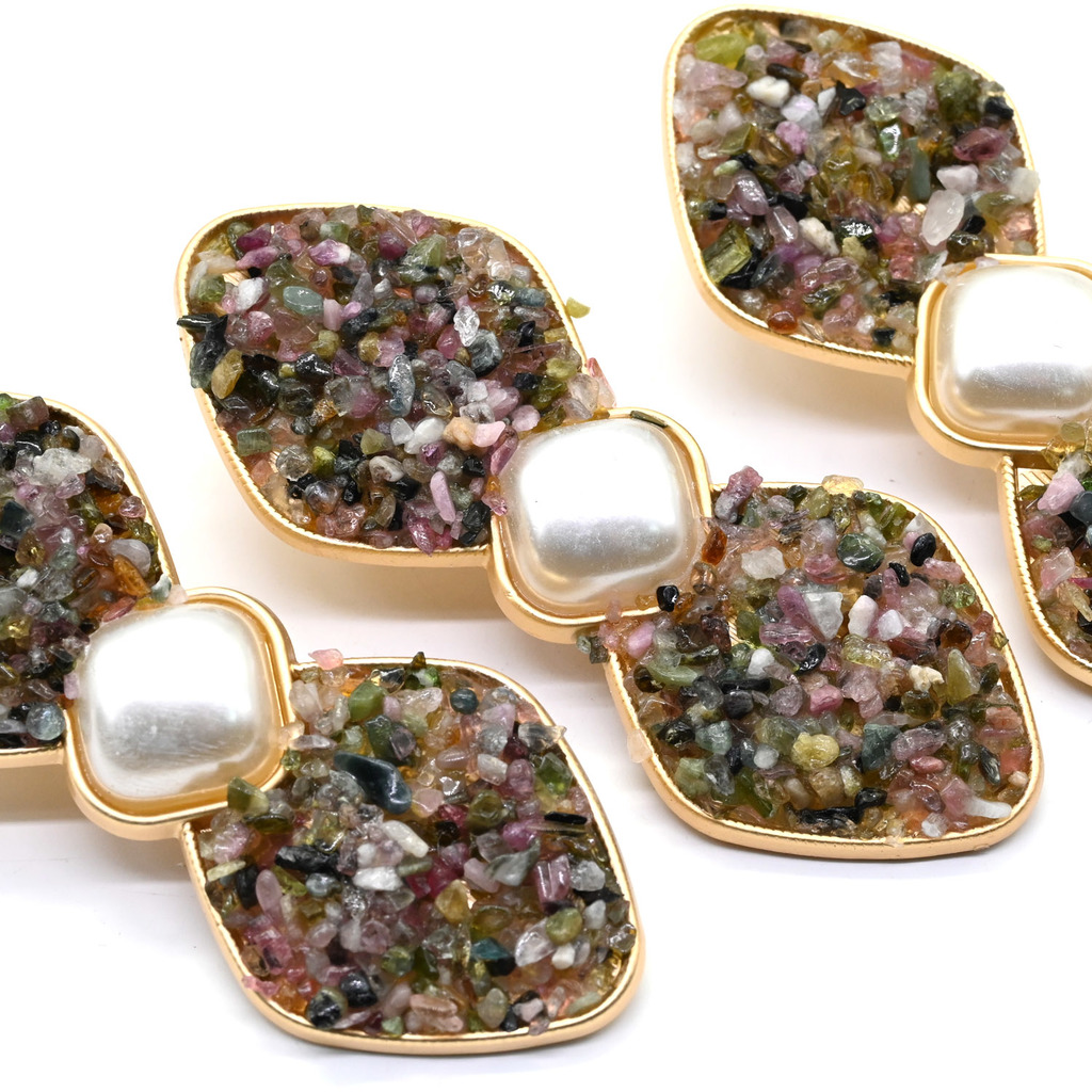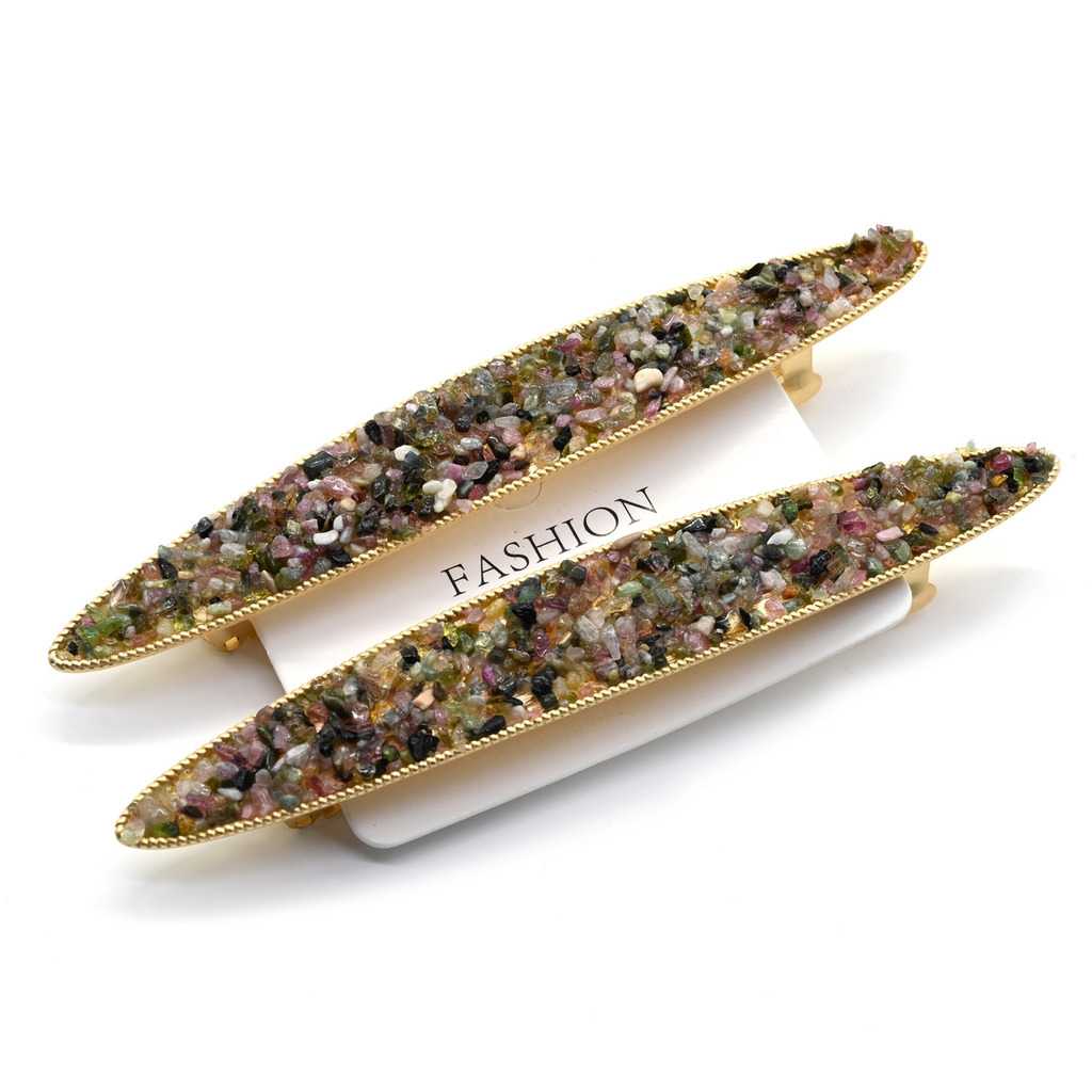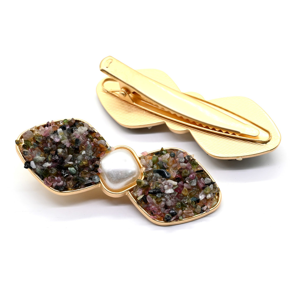 Материал: Турмалин Натуральность: Натуральный камень Месторождение: Бразилия •Заколка зажим с крошкой натурального природного турмалина и майоркой. •Металлический зажим для волос – незаменимый аксессу... Показать описаниеар для создания стильного образа! •Зажим выполнен из прочного материала, обеспечивающего надёжную фиксацию даже объёмной причёски, позволяя создавать различные вариации укладок каждый день. •Подходит как для повседневного применения, так и для вечернего выхода. Прочный механизм гарантирует длительный срок эксплуатации без потери функциональности. •Габариты заколки: длина 6,5см, ширина 2,5см. •Габарит заколки ± 1мм. •Цена за 1 шт.