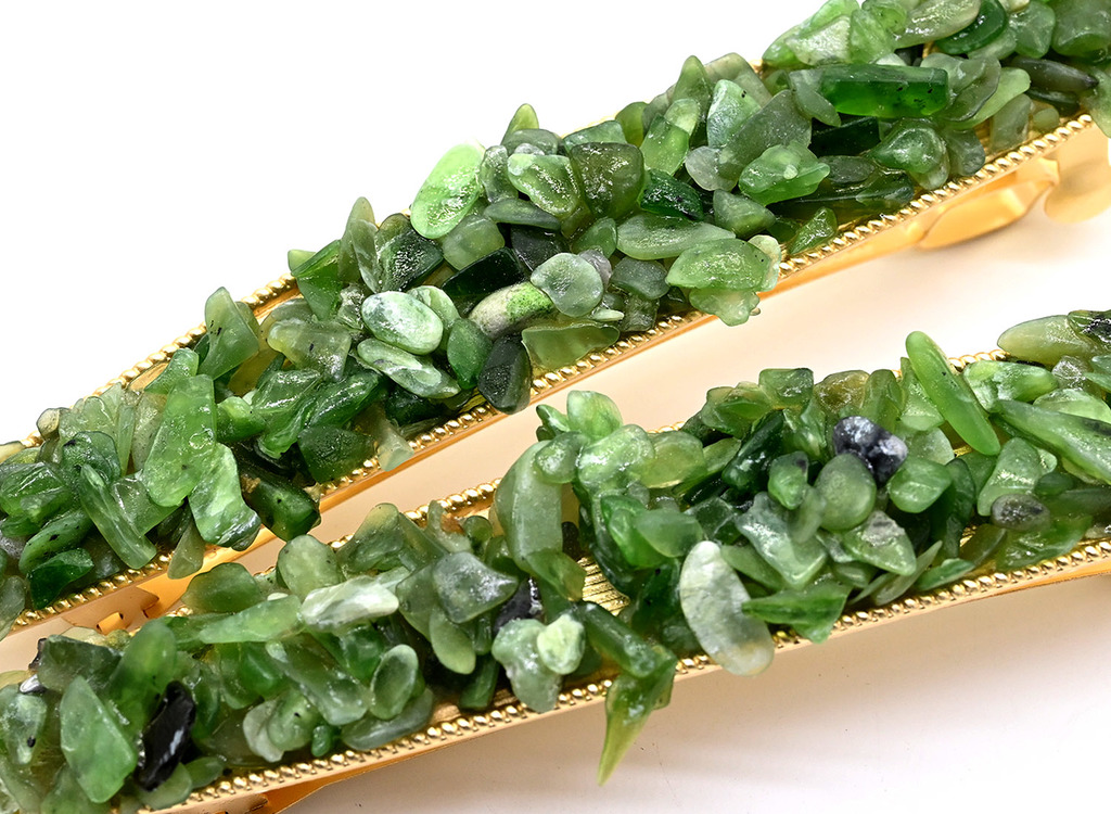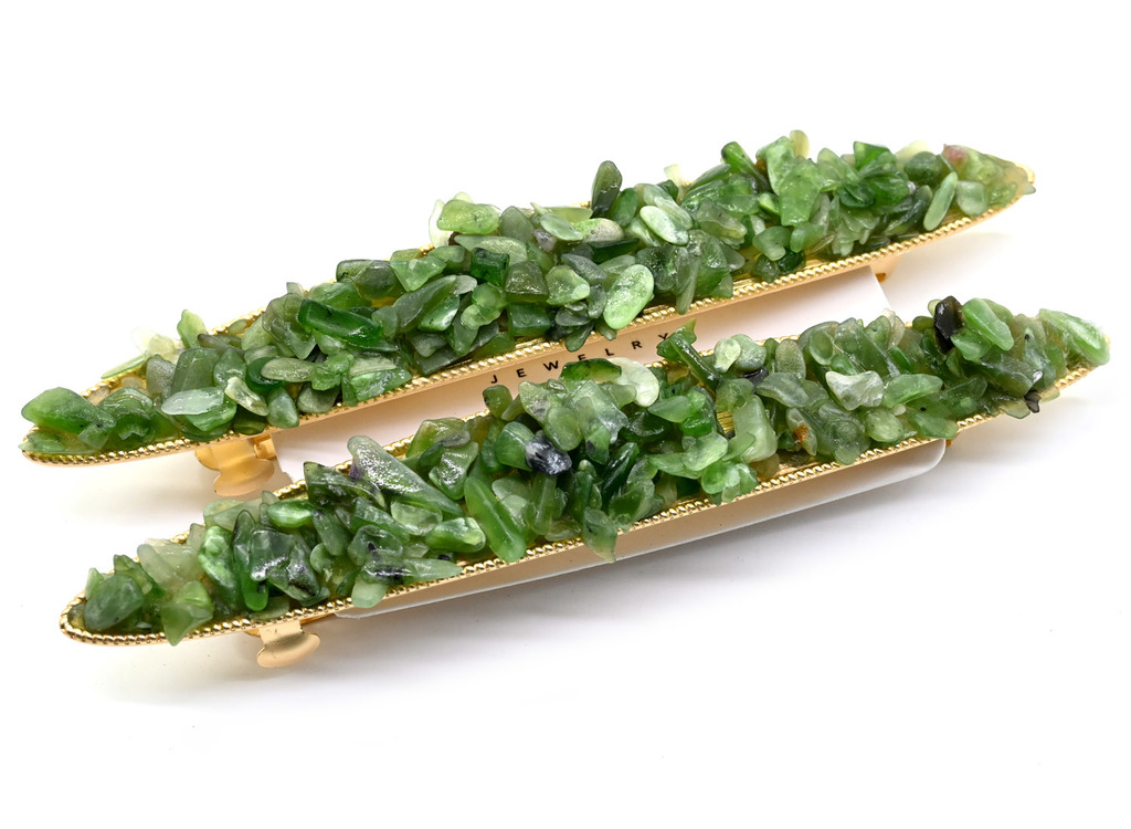 Зажим для волос Бантик с натуральным нефритом 6,5*2,5смЗажим для волос Бантик с натуральным нефритом 6,5*2,5см