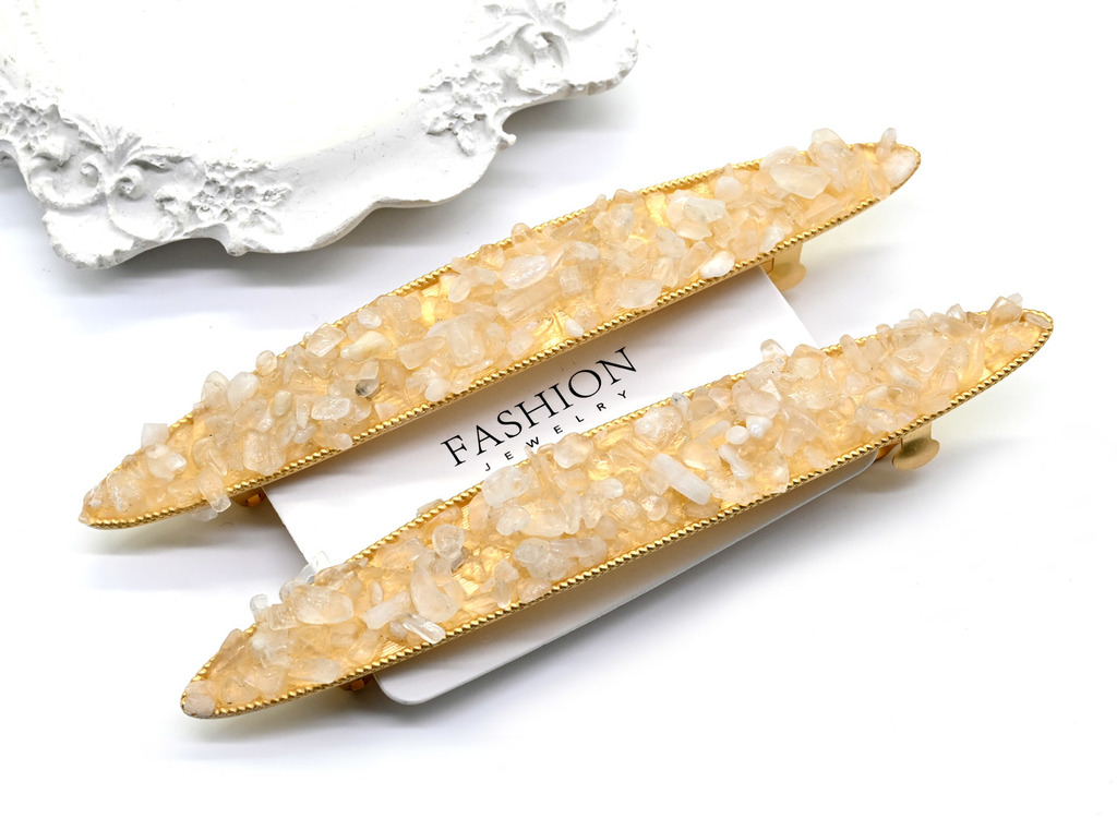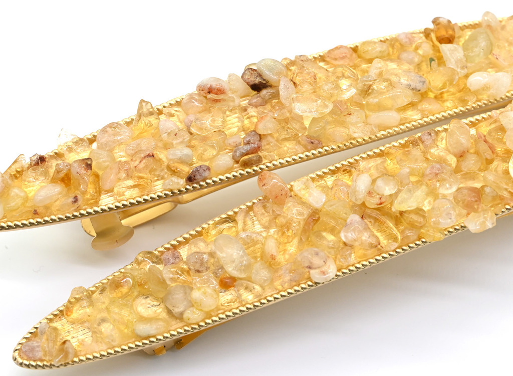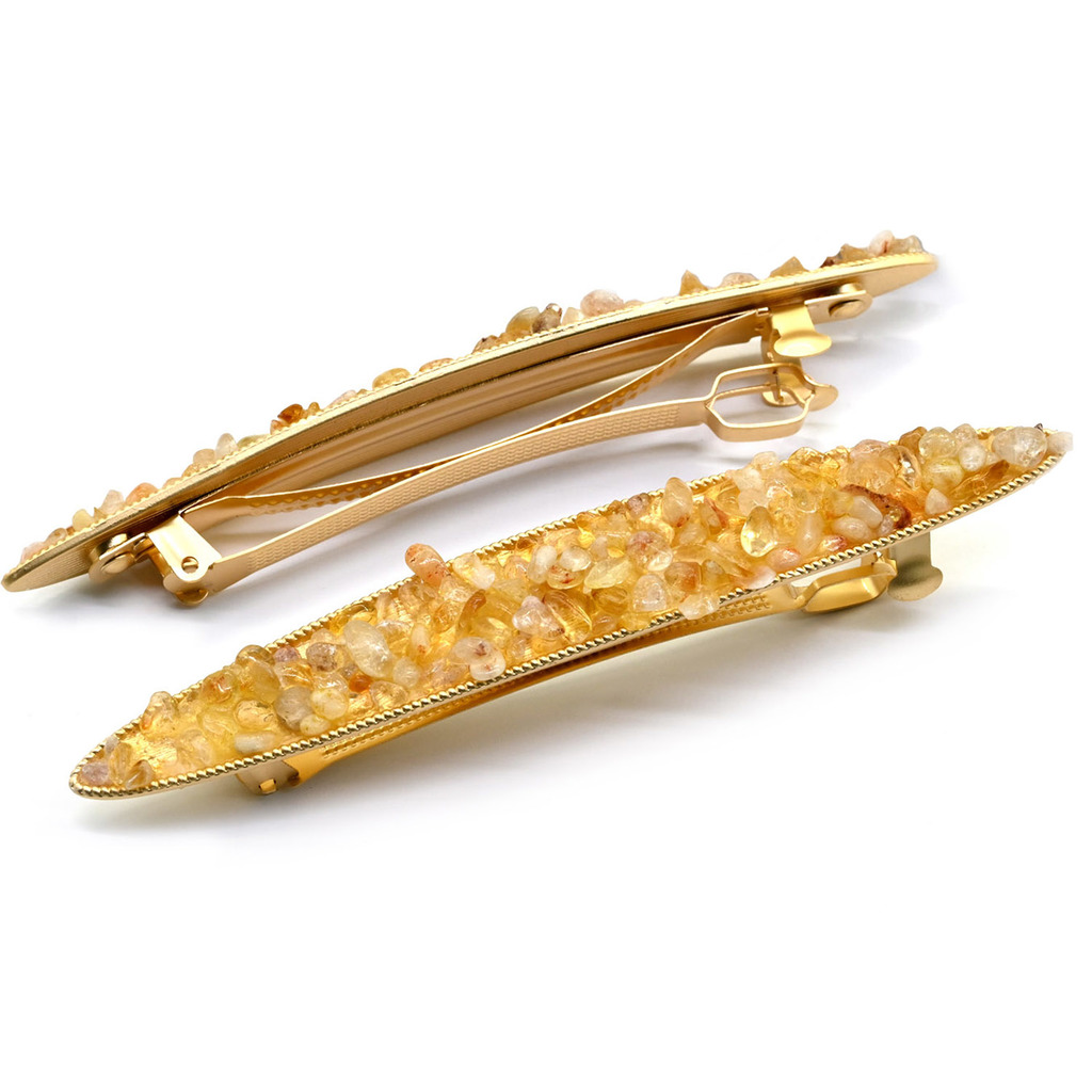 Зажим для волос Бантик с натуральным цитрином 6,5*2,5смЗажим для волос Бантик с натуральным цитрином 6,5*2,5см