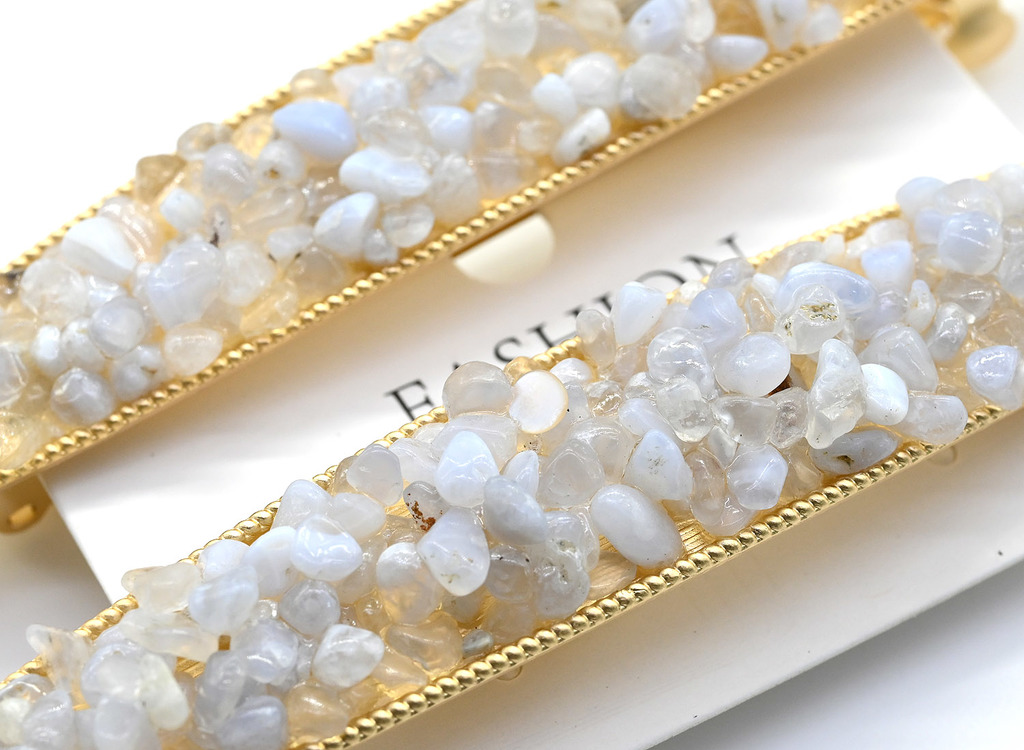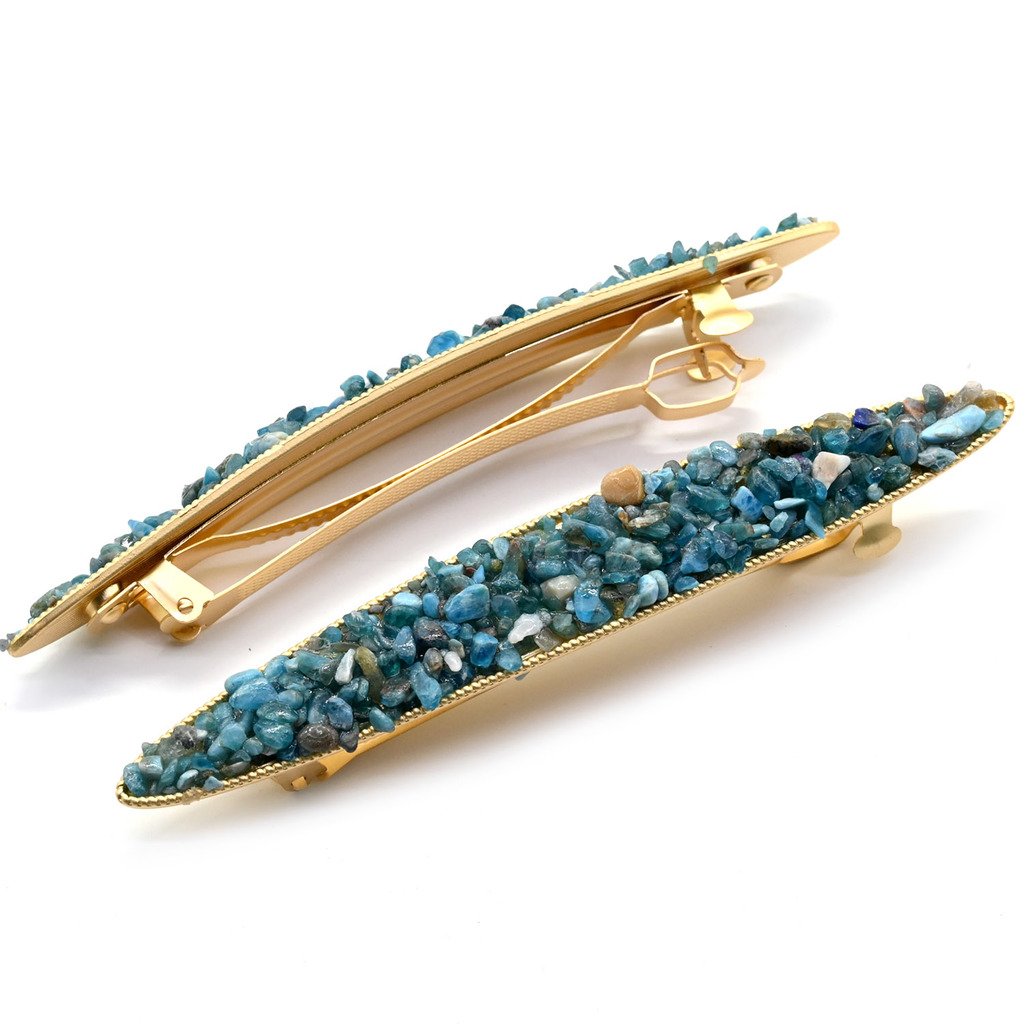 Большая заколка для волос с агатом голубым (сапфирин) 11,7*1,8*1,5см