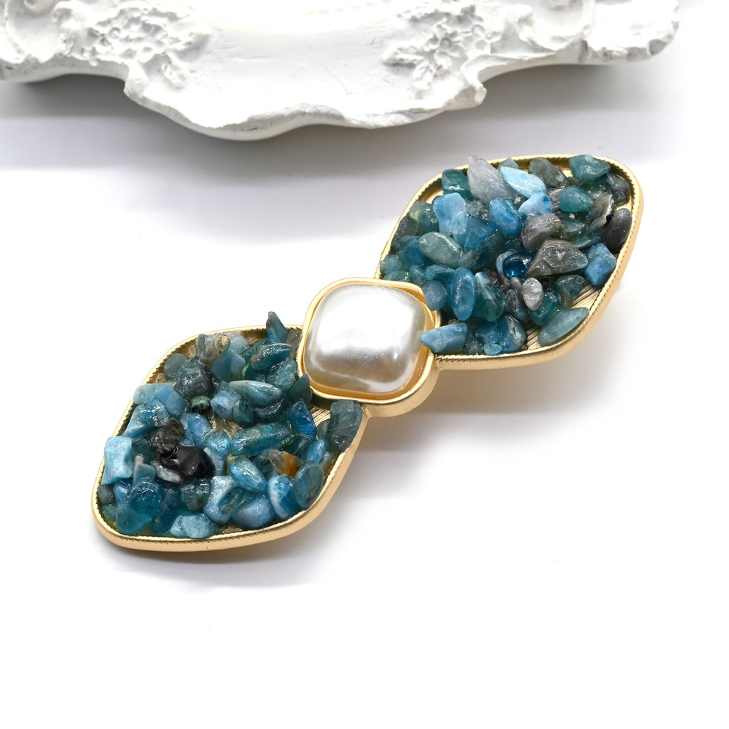 Зажим для волос Бантик с агатом голубым (сапфирин) 6,5*2,5смЗажим для волос Бантик с агатом голубым (сапфирин) 6,5*2,5см