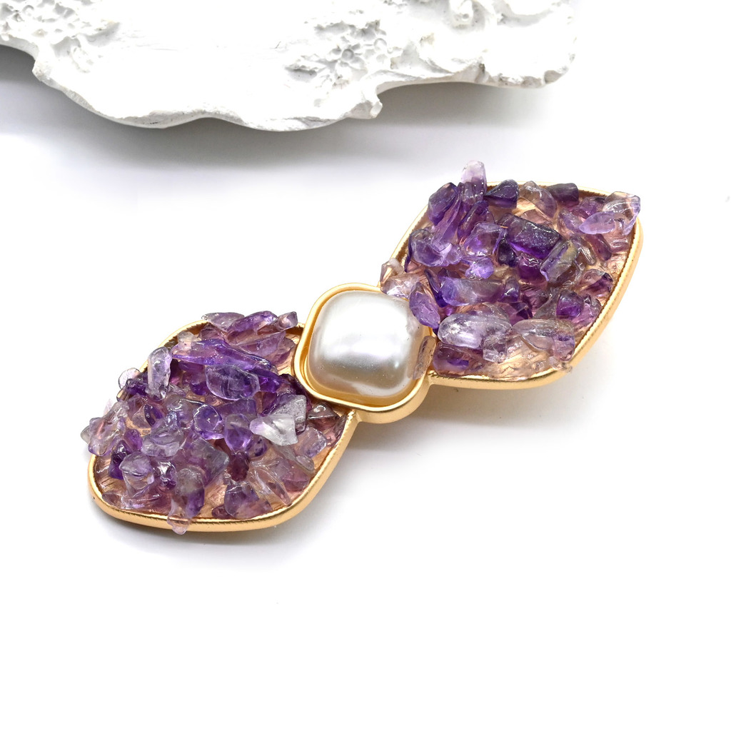 Зажим для волос Бантик с аметистом 6,5*2,5см