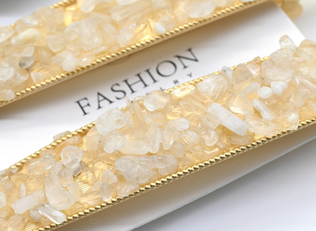 Материал: Кварц Натуральность: Натуральный камень Месторождение: Бразилия •Металлический зажим для волос – незаменимый аксессуар для создания стильного образа! •Зажим выполнен из прочного материала, о... Показать описаниебеспечивающего надёжную фиксацию даже объёмной причёски, позволяя создавать различные вариации укладок каждый день. •Подходит как для повседневного применения, так и для вечернего выхода. Прочный механизм гарантирует длительный срок эксплуатации без потери функциональности. •Габариты заколки: длина 7см, ширина 3см, толщина 2см, •Габарит заколки ± 2мм. •Габарит круга 30*30мм ± 1мм. •Цена за 1 шт.