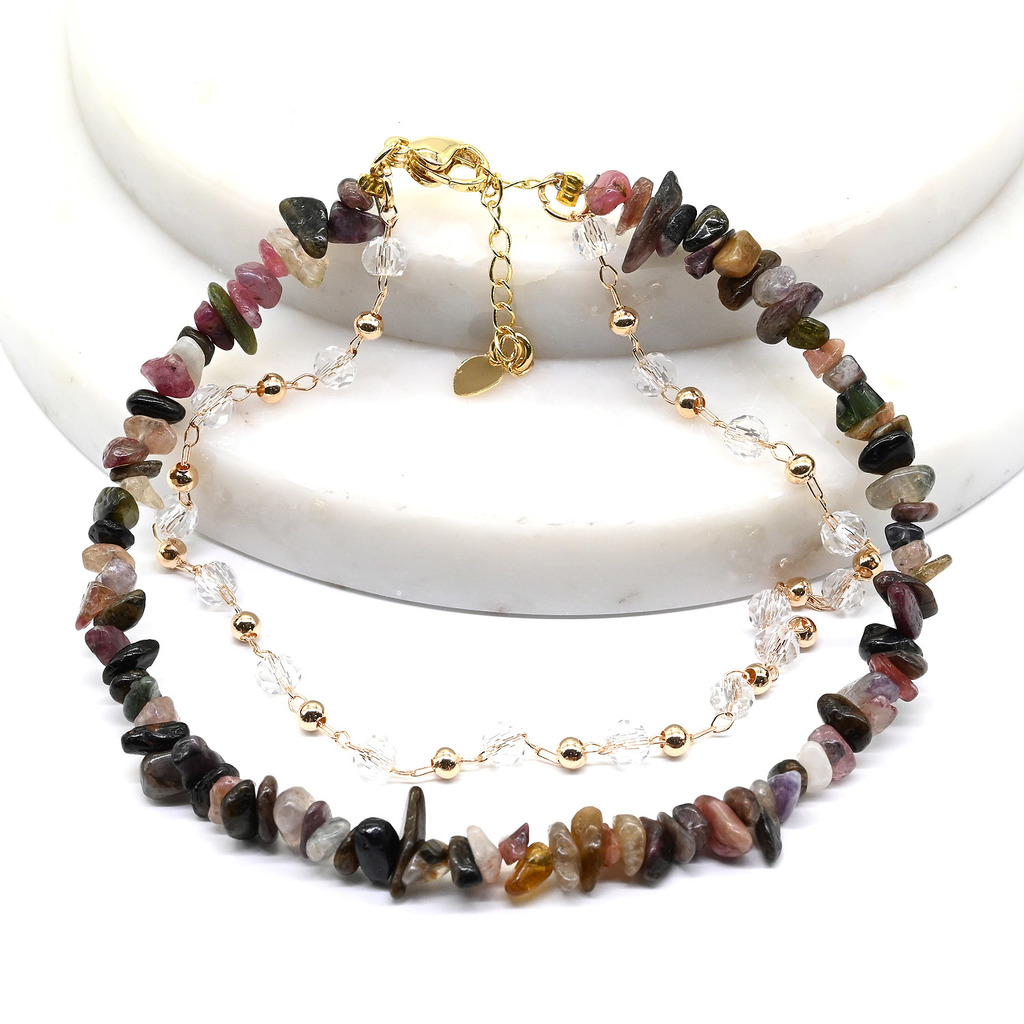 Материал: Турмалин Натуральность: Натуральный камень Месторождение: Бразилия Основание: Камень •Браслет Анклет двойной с натуральным турмалином. •Длина браслета 22см + 3см цепочка - удлинитель. •Средн... Показать описаниеий размер крошки 5*4мм ± 3мм. •Эффектное трендовое украшение на щиколотку. •Такой минималистический анклет станет прекрасным акцентом, который подчеркнет вашу индивидуальность, не перегружая образ. •Это женственное и утонченное украшение актуально для повседневной носки, пляжного отдыха, вечернего выхода.