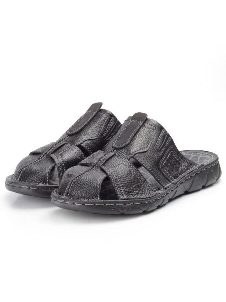 Сланцы мужские (натуральная кожа) Артикул: P2322-1 Модель сезона: лето. Основной материал: натуральная кожа. Вид кожи основного материала: зернистая. Внутренний материал: натуральная кожа. Толщина под... Показать описаниеошвы: 2,0 см. Высота каблука: 3,0 см. Материал подошвы: резиновая (легкая). Вид подошвы: стандартная. Способ соединения подошвы: клееная, прошитая. Тип мыска: закрытый. Тип задника: открытый. Размеры указанные на изделии и длина стельки: 40 размер стельки 25,5 см. 41 размер стельки 26,5 см. 42 размер стельки 27,0 см. 43 размер стельки 28,0 см. 44 размер стельки 28,5 см. 45 размер стельки 29,0 см. Витринный образец 42-го размера. Длина стельки 27,0 см. Модель идет размер в размер! Цвет: Черный