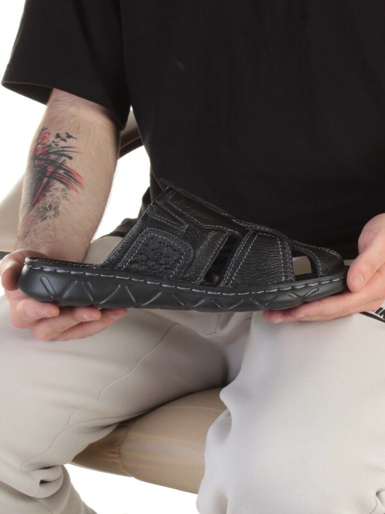 Сандалии мужские (натуральная кожа) Артикул: P2306-1 Модель сезона: лето. Основной материал: натуральная кожа. Вид кожи основного материала: зернистая. Внутренний материал: натуральная кожа. Толщина п... Показать описаниеодошвы: 2,0 см. Высота каблука: 3,0 см. Материал подошвы: резиновая (легкая). Вид подошвы: стандартная. Способ соединения подошвы: клееная, прошитая. Тип мыска: открытый. Тип задника: открытый. Размеры указанные на изделии и длина стельки: 40 размер стельки 25,5 см. 41 размер стельки 26,5 см. 42 размер стельки 27,0 см. 43 размер стельки 28,0 см. 44 размер стельки 28,5 см. 45 размер стельки 29,0 см. Витринный образец 42-го размера. Длина стельки 27,0 см. Модель идет размер в размер! Цвет: Черный