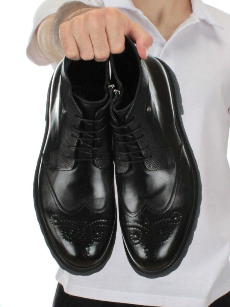 Ботинки мужские (натуральная кожа) Артикул: 01-H9003-B82-SW3 BLACK Модель сезона: осень-зима Материал верха: натуральная кожа Вид кожи основного материала: гладкая и рептилия Внутренний материал: нату... Показать описаниеральная кожа (перфорированная) Стелька:натуральная кожа (перфорированная) Подошва: резиновая Способ соединения подошвы: клееная и дополнительно прошитая Толщина подошвы: 0,5 см Высота каблука: 3,0 см Высота обуви по центру: 16,5 см Вид застежки: молния Размеры указанные на изделии и соответствие российским стандартам: 6UK - 40 размер стельки 25,5 см. 7UK - 41 размер стельки 26,5 см. 8UK - 42 размер стельки 27,0 см. 9UK - 43 размер стельки 27,5 см. 10UK - 44 размер стельки 28,0 см. 11UK - 45 размер стельки 29,0 см. 12UK - 46 размер стельки 29,5 см Витринный образец 9UK - 43-го размера. Модель идет размер в размер! Цвет: Черный