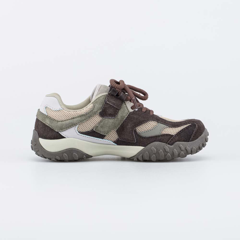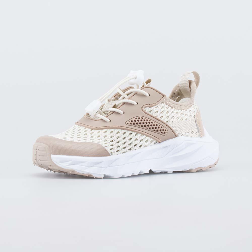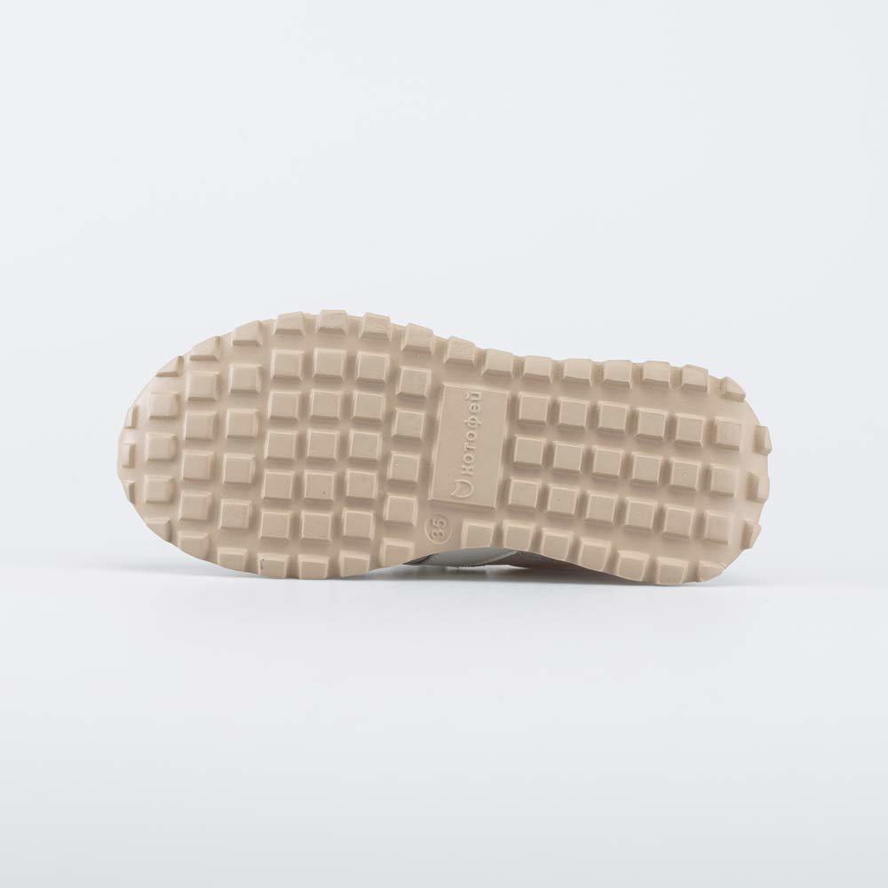 Описание Описание модели Модные кроссовки выполнены в трендовом бежевом цвете и подходят для девочки школьного возраста. Верх изготовлен из сетчатого материала, который традиционно используется в спор... Показать описаниетивной обуви. Детали из искусственной кожи придают каркасу необходимую жесткость и защищают обувь от преждевременного повреждения. Подкладка из полиэстера обеспечивает потоотведение, что особенно актуально для молодых людей, - в подростковом возрасте терморегуляция стопы не стабильна и возможен перегрев. Формованная основа текстильной стельки поддерживает стопу. Фиксацию обеспечивает система быстрой шнуровки: чтобы подогнать обувь по ноге, просто покрутите гайку. Массивная фактурная подошва выполнена из легкого материала ЭВА и усилена накладками из термопластичной резины для придания износостойкости и устойчивости. Для поддержания внешнего вида обуви рекомендуем обрабатывать её защитными спреями и чистить мягкой щеткой. Машинная стирка исключена.