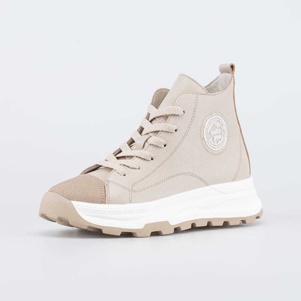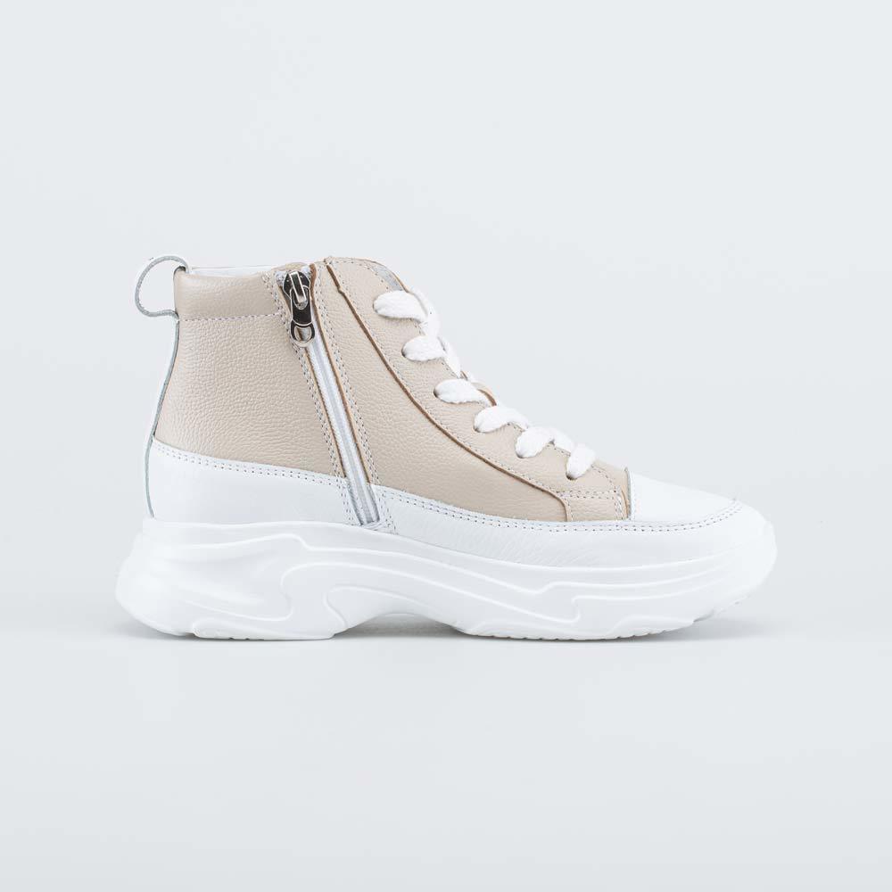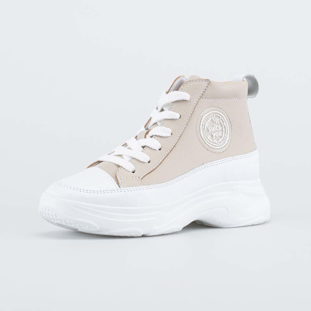 Описание Описание модели Ботинки на высокой подошве выполнены в трендовом бежевом цвете и стилизованы под Кеды. Декорированы нашивкой в виде печати с надписями и предназначены для девочки подростковог... Показать описаниео возраста. Верх, подкладка и съемная стелька изготовлены из дышащей натуральной кожи, что создает благоприятный микроклимат для ножек. Носочная часть защищена от повреждений кожаной накладкой с ПУ-напылением. Молния позволяет быстро обуваться и разуваться, а шнурки – отрегулировать обувь по подъему. Подошва выполнена из невесомого материала ЭВА (этиленвинилацетата), поэтому, несмотря на массивность, она легкая и амортизирующая. Модель анатомически-правильная: разработана с учетом особенностей подростковой стопы. Сделано в России, Егорьевск.