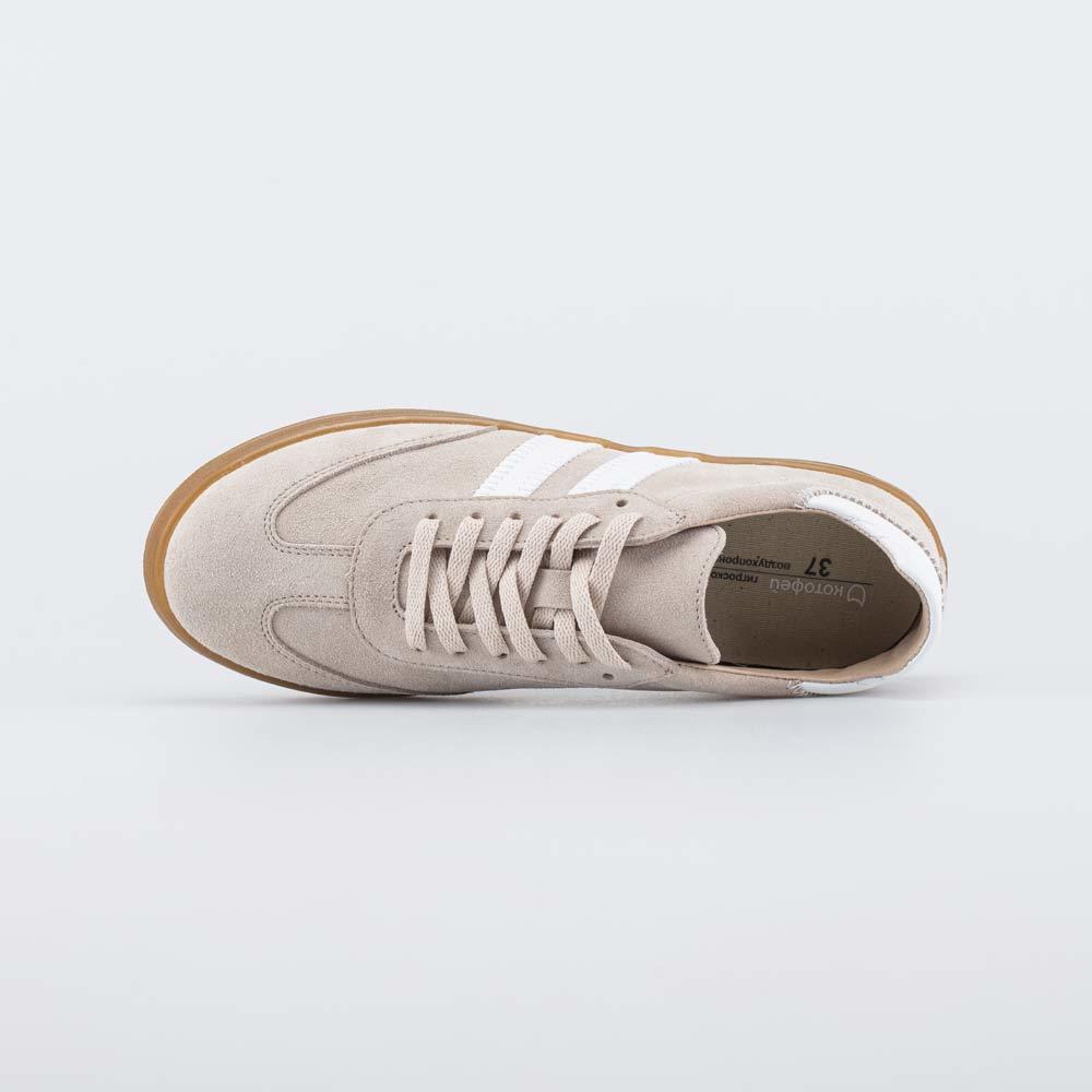 Описание Описание модели Подростковые кроссовки Котофей для девочки отлично подходят на лето, а также для теплой и сухой погоды весны и осени. Верх летних бежевых кроссовок выполнен из комбинации нату... Показать описаниеральной кожи и спортивной сетки, которая обеспечивает оптимальный уровень вентиляции. Подкладка из гипоаллергенного полиэстера и съемная текстильная стелька на формованной основе отвечают за эффективное потоотведение. Модель на липучках дополнена эластичными шнурками для наиболее плотного прилегания обуви к стопе. Модная утонченная подошва из резины обеспечивает амортизацию при ходьбе и образует наплыв на носочную часть, защищая ее от повреждений. Обувь для подростков анатомически правильная: имеет приподнятость пяточной части, округлый носок и в меру жесткий задник. Для поддержания внешнего вида светлой обуви рекомендуем обрабатывать её защитными спреями и чистить мягкой щеткой. Сделано в России.