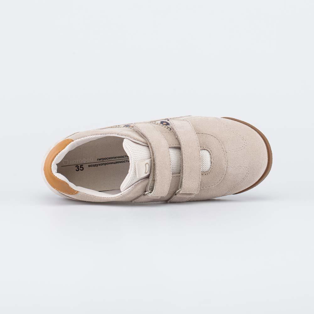 Описание Описание модели Подростковые кроссовки для девочки отлично подходят для активных прогулок весной или осенью. Верх этих бежевых кроссовок выполнен из дышащей натуральной кожи-велюра и украшен ... Показать описаниеанималистичным принтом. Язычок из сетчатого текстиля повышает воздухопроницаемость кожаных кроссовок. Подкладка из гипоаллергенного полиэстера в подростковой обуви отвечает за потоотведение – в переходном возрасте терморегуляция еще не стабильна. Формованная основа съемной текстильной стельки мягко амортизирует и поддерживает стопу. Кроссовки на липучках легко отрегулировать по подъему, в них удобно обуваться и разуваться. Модная утонченная подошва из резины обеспечивает амортизацию и образует наплыв на носочную часть, защищая ее от повреждений. Обувь для подростков имеет анатомически правильную конструкцию: задник необходимой жесткости, приподнятость пяточной части, округлый носок. Для поддержания внешнего вида светлой обуви рекомендуем обрабатывать её защитными спреями и чистить мягкой щеткой. Сделано в России