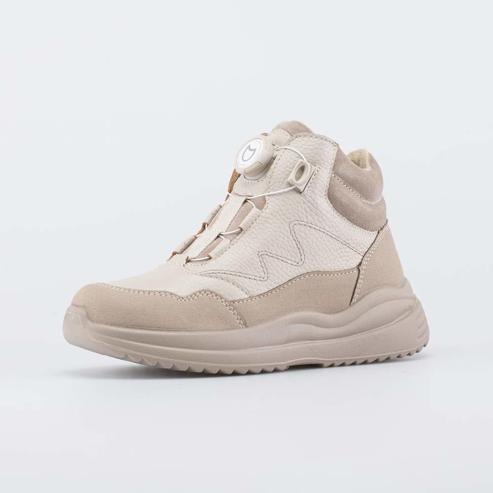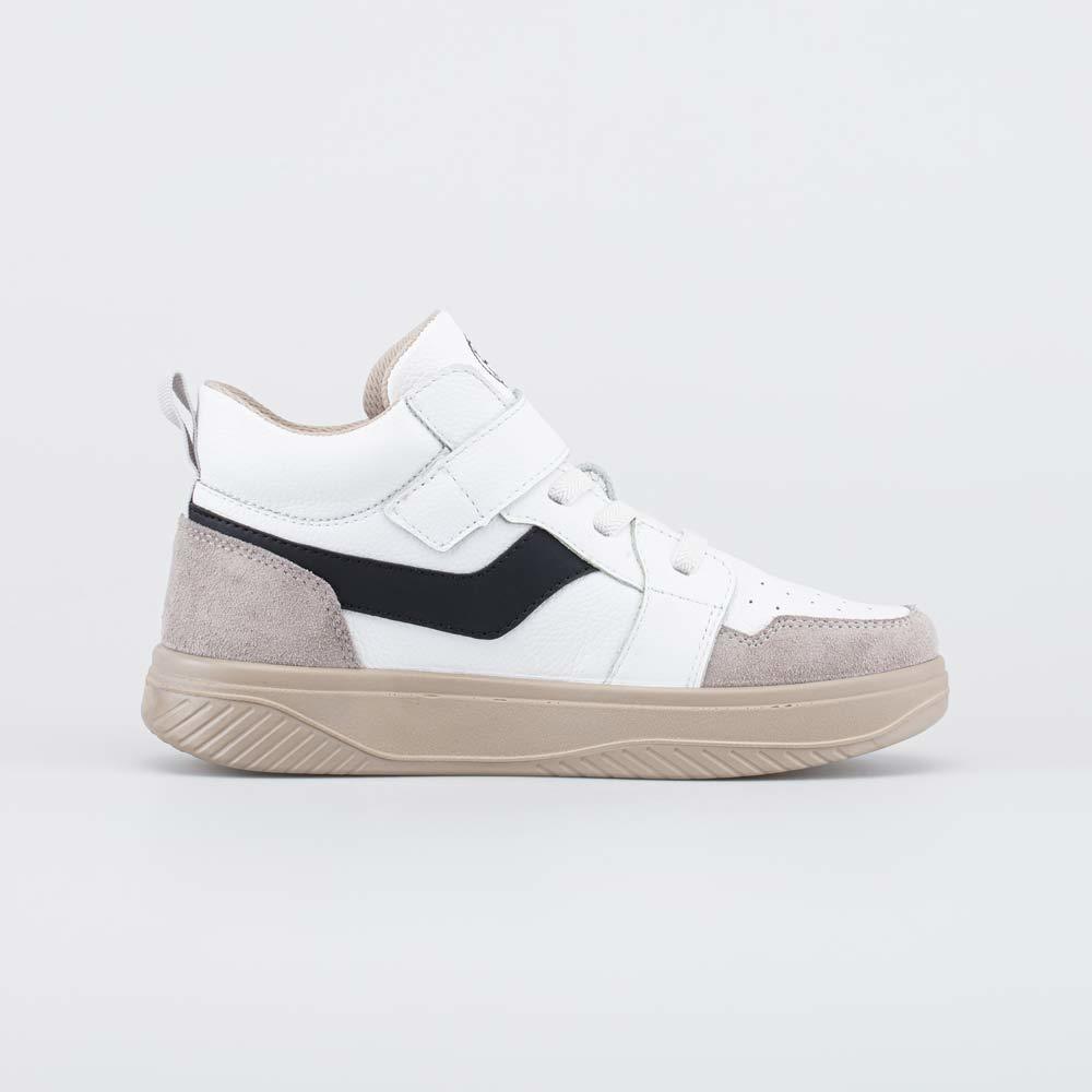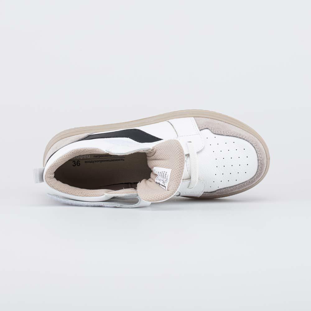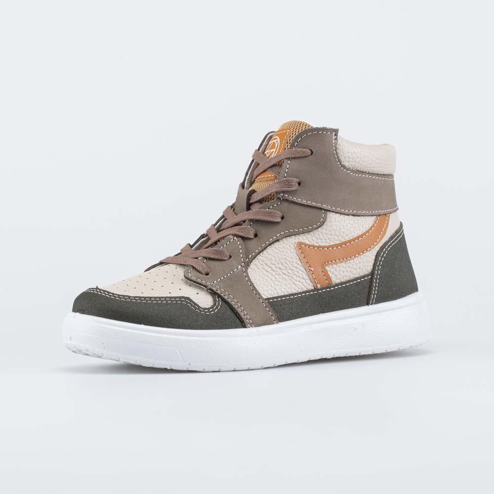 Описание Описание модели Высокие кеды для мальчика, разработанные с учетом возрастных особенностей стопы, отлично подходят для носки в осеннюю или весеннюю погоду. Эти светло-бежевые кеды, подчеркнуты... Показать описаниее темными цветовыми акцентами, имеют верх из дышащей натуральной кожи. Несквозная перфорация повышает воздухопроницаемость подростковой обуви. Носок и пятка защищены от повреждений дополнительными велюровыми вставками. Кожаные кеды имеют подкладку из гипоаллергенного полиэстера, который обеспечивают эффективное потоотведение. Формованная основа съемной хлопковой стельки амортизирует и поддерживает стопу. Кеды на липучках дополнены шнурками-резинками, которые не требуют завязывания и обеспечивают плотное прилегание обуви к ноге. Легкая и гибкая подошва из полиуретана хорошо амортизирует. Обувь для подростков имеет правильную анатомическую конструкцию: задник необходимой жесткости, приподнятость пяточной части, округлый носок. Сделано в России.