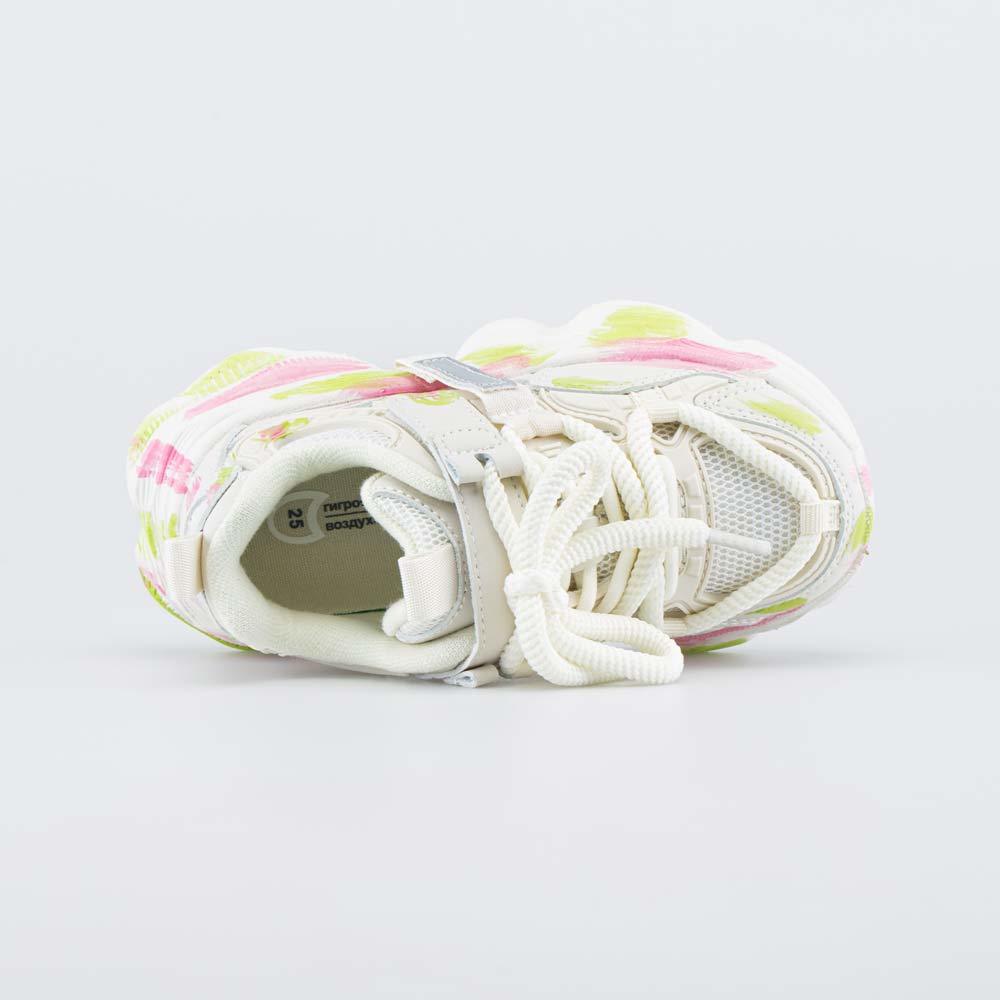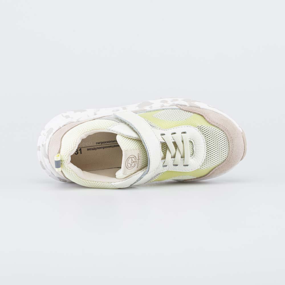 Описание Описание модели Модные кроссовки для девочки выполнены в трендовом бежевом, который дополнен легкими цветовыми акцентами. Верх изготовлен из сетчатого материала, который традиционно используе... Показать описаниется в спортивной обуви. Детали из искусственной кожи придают каркасу необходимую жесткость и защищают обувь от преждевременного повреждения. Подкладка из полиэстера обеспечивает потоотведение, что особенно актуально для молодых людей, - в подростковом возрасте терморегуляция стопы не стабильна и возможен перегрев. Формованная основа текстильной стельки поддерживает стопу. Обувь фиксируется на ногах при помощи липучек. Продетая через них модная объемная шнуровка выполняет декоративную функцию. Тренд объемных деталей продолжает массивная подошва. Она выполнена из ЭВА, поэтому легкая и хорошо амортизирует. Для поддержания внешнего вида светлой обуви рекомендуем обрабатывать её защитными спреями и чистить мягкой щеткой. Машинная стирка исключена.