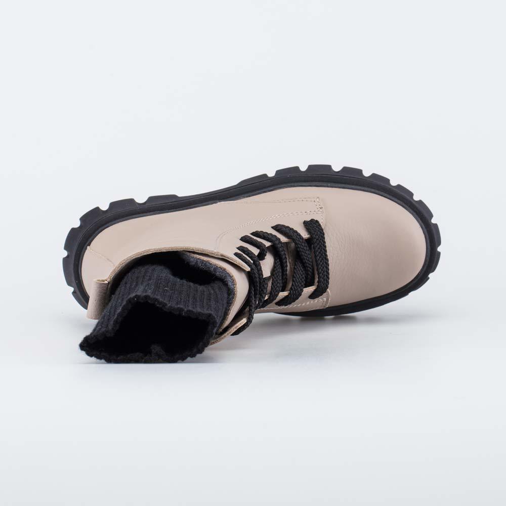 Описание Описание модели Утепленные сапожки со съемным вязаным чулком становятся интересным дополнением весеннего или осеннего образа девочки-подростка. Низ (полусапожки) выполнен из натуральной кожи ... Показать описаниеспокойного бежевого цвета. Внутри подкладка из шерстяной байки и съемная войлочная стелька. Они надежно удерживают тепло, отводят от стоп влагу и обеспечивают здоровый микроклимат внутри подростковой обуви. Вязаный трикотажный чулок в рубчик можно расправить на всю высоту, подвернуть или снять, чтобы носить полусапожки без него. Сапожки на молнии дополнены шнурками, которые дают возможность отрегулировать модель по подъему стопы. Массивная тракторная подошва из ТЭП (термоэластопласта) обеспечивает дополнительную теплоизоляцию и высокую устойчивость демисезонной обуви. Модель имеет анатомически-правильную форму следа, а стелька из войлока приформовывается к стопе, создавая индивидуальную анатомическую форму внутреннего пространства в обуви. Сделано в России.