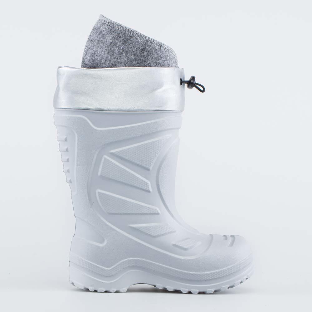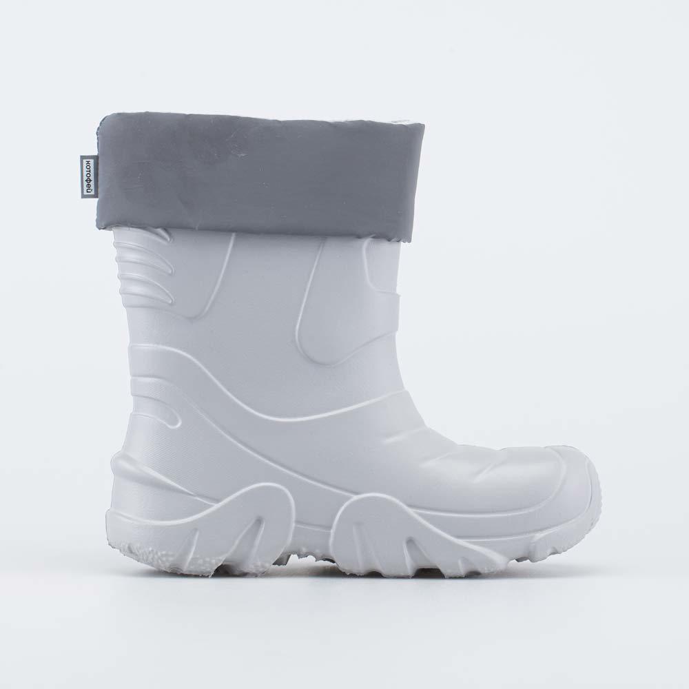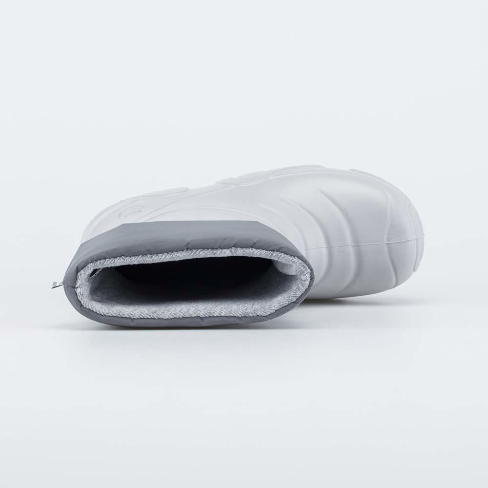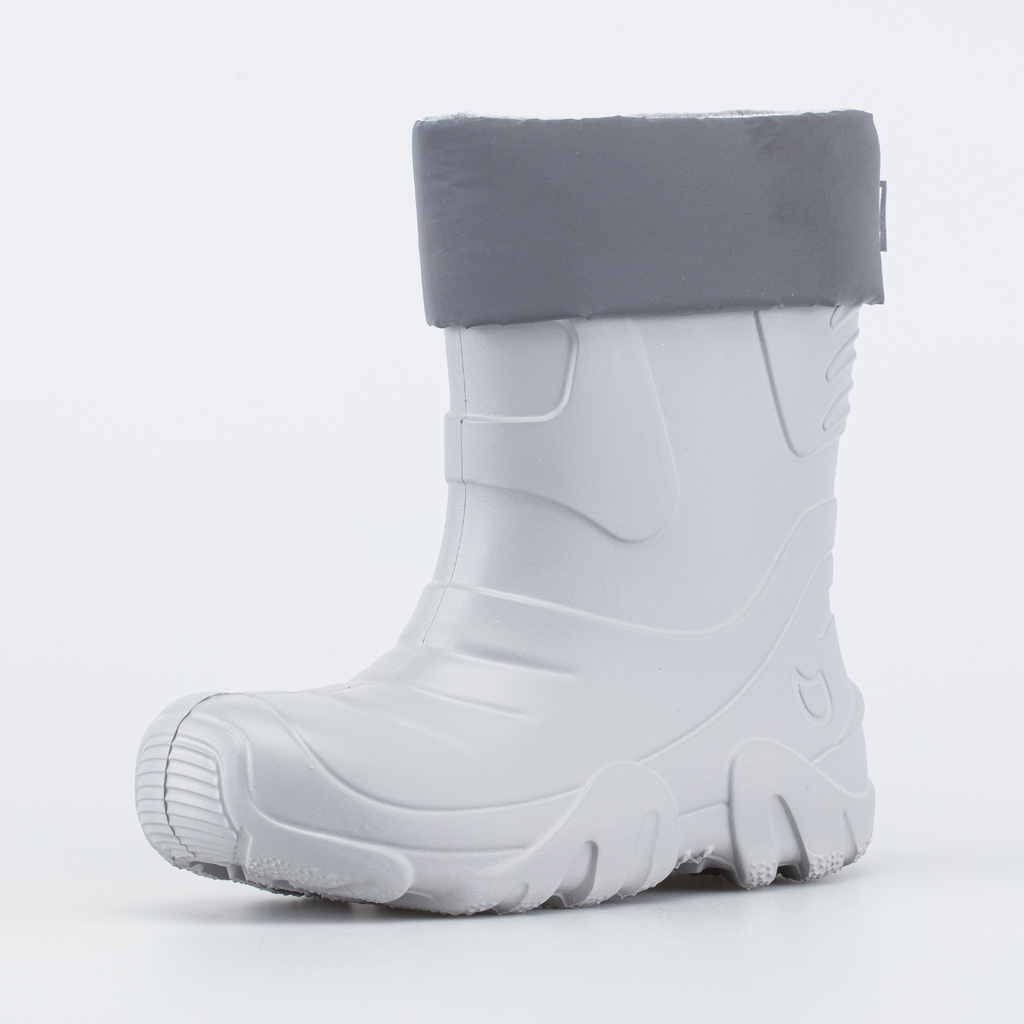 Описание Описание модели Утепленные сапоги из легкого, гибкого и амортизирующего материала ЭВА выполнены в трендовом сером цвете. Имеют двухслойный вкладной чулок и учитывают особенности детской стопы... Показать описание. Вкладной чулок с пришитой войлочной стелькой состоит из нескольких слоев: 1 - внутренний из хлопкового флиса впитывает избыток влаги; 2 - утеплитель из полиэстера отвечает за теплоизоляцию. Укреплен внешним карманом из искусственной кожи, чтобы обеспечить дополнительную поддержку стопы. Чулок можно вынуть и просушить на батарее, а также при необходимости постирать в стиральной машине. Светоотражающий отворот из плотного нейлона повышает безопасность ребенка в темное время суток. Обувь предназначена для детей школьного возраста, поэтому особое внимание уделено правильной конструкции: более плотный материал в районе пятки для придания необходимой жесткости и анатомическая форма следа. Сделано в России.