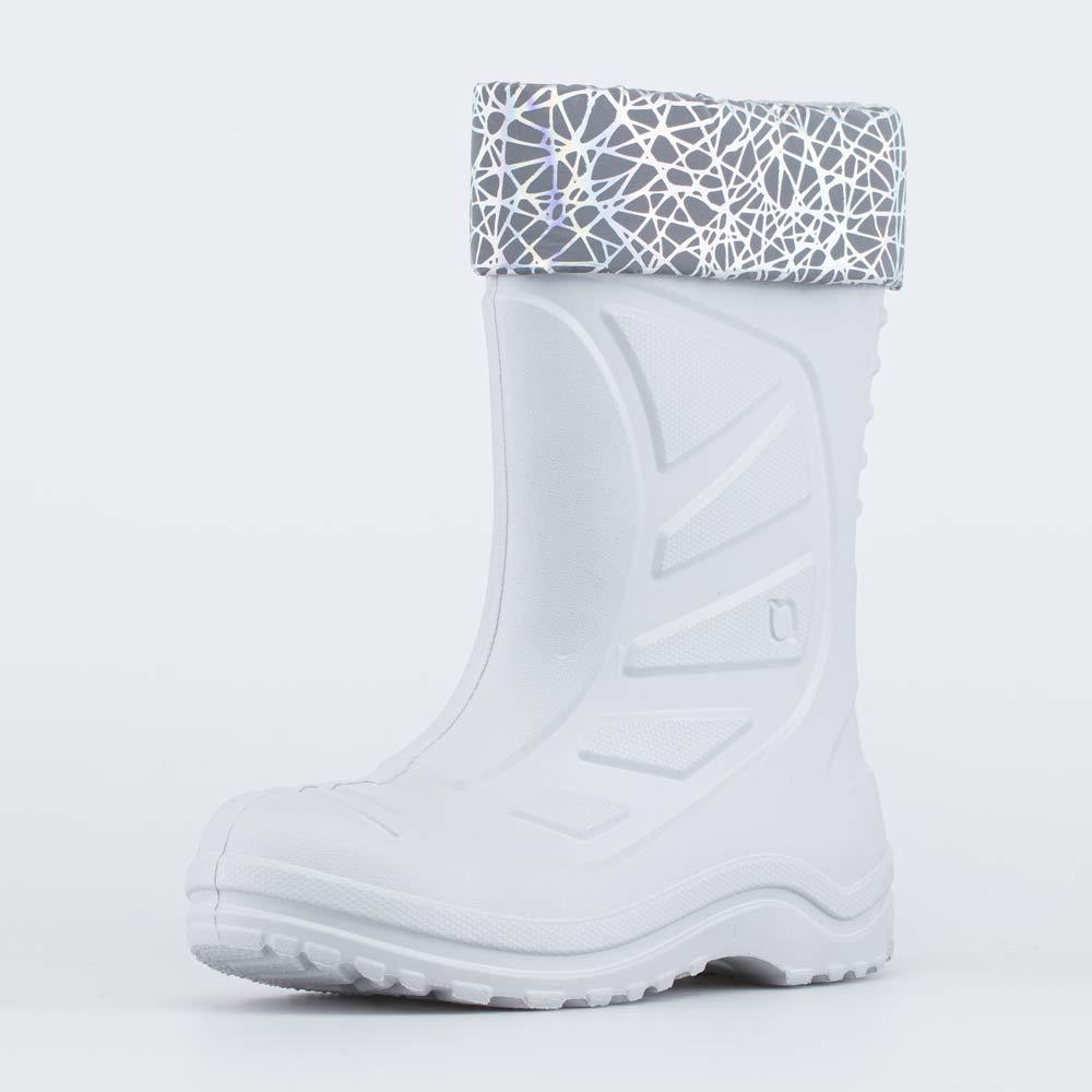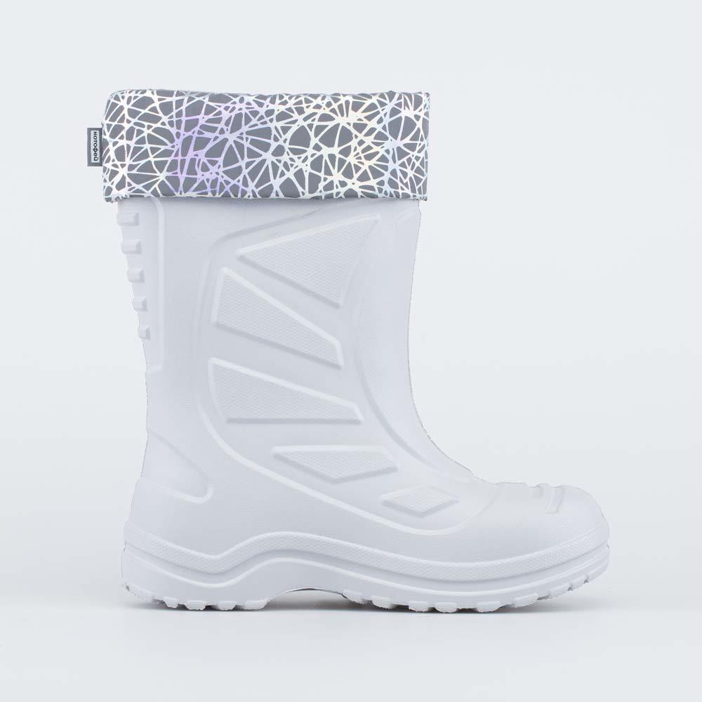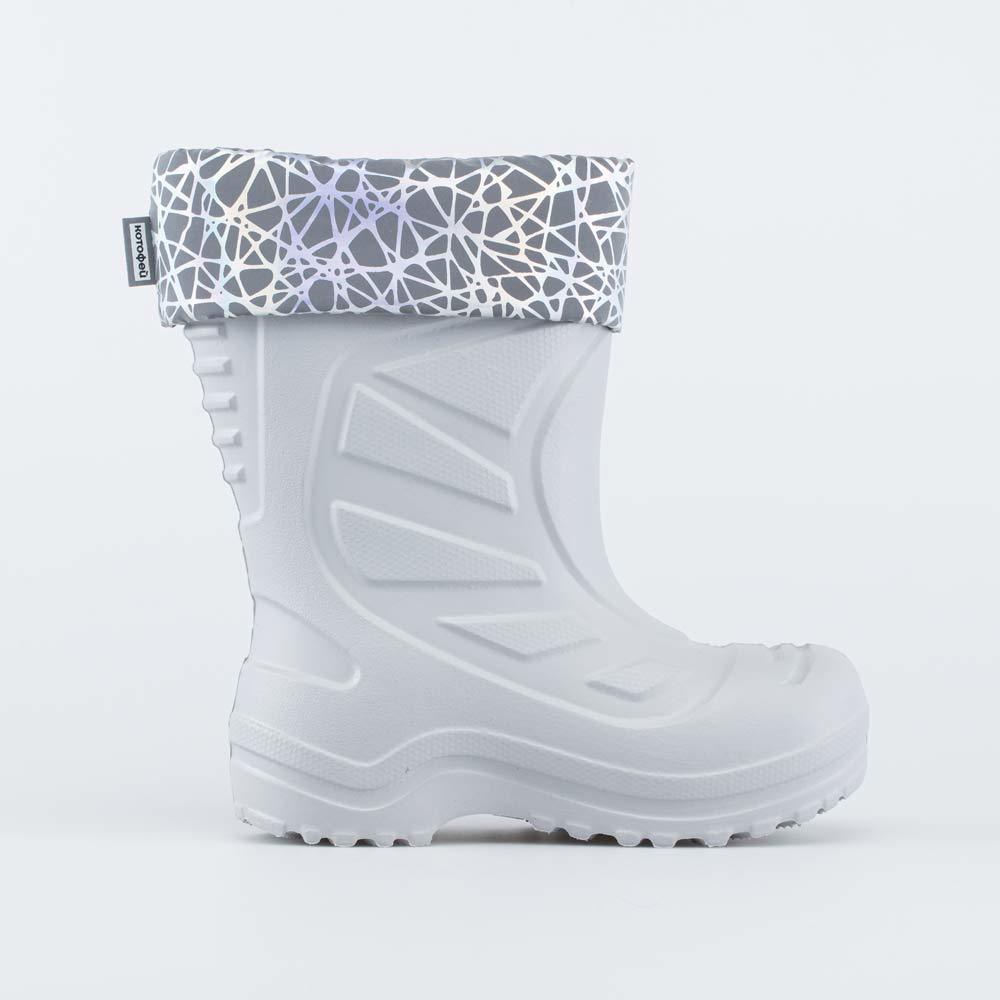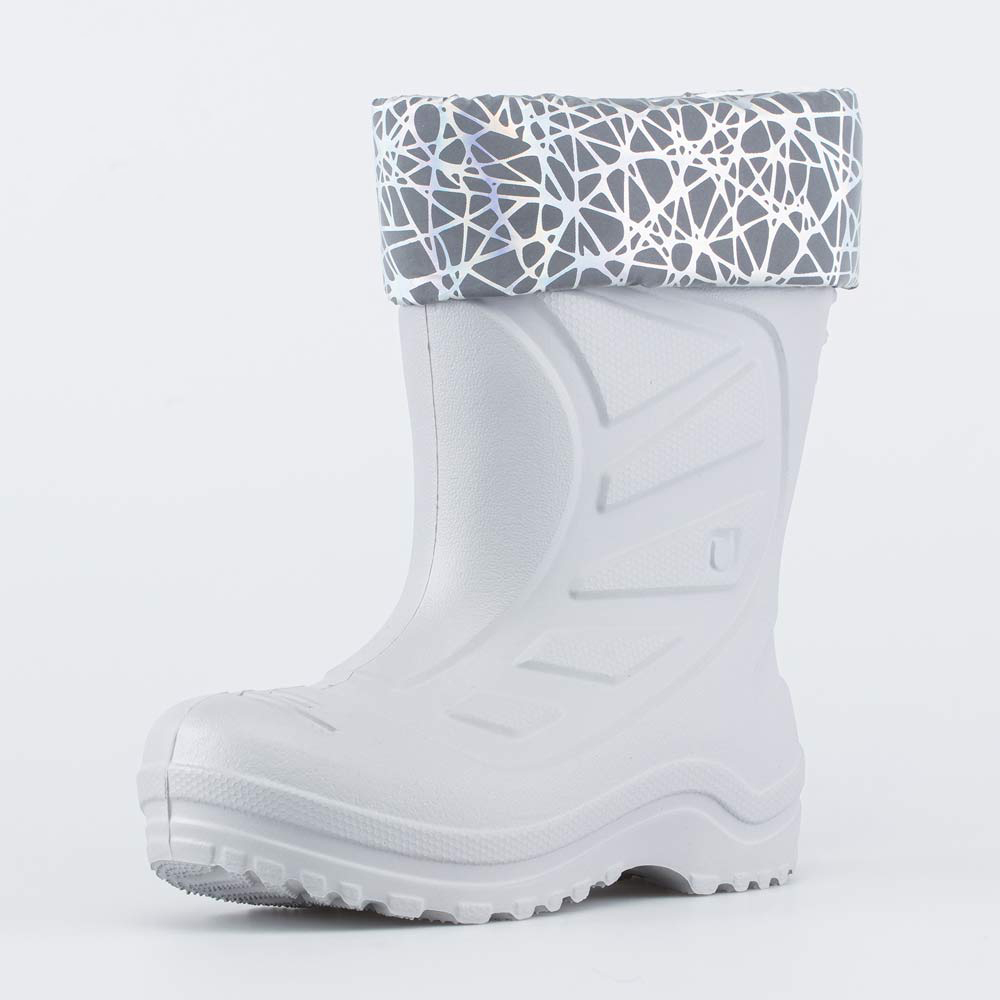 Описание Описание модели Утепленные сапоги из легкого, гибкого и амортизирующего материала ЭВА выполнены в трендовом сером цвете. Имеют двухслойный вкладной чулок и учитывают особенности детской стопы... Показать описание. Вкладной чулок с пришитой войлочной стелькой состоит из нескольких слоев: 1 - внутренний из хлопкового флиса впитывает избыток влаги; 2 - утеплитель из полиэстера отвечает за теплоизоляцию. Укреплен внешним карманом из искусственной кожи, чтобы обеспечить дополнительную поддержку стопы. Чулок можно вынуть и просушить на батарее, а также при необходимости постирать в стиральной машине. Светоотражающий отворот из плотного нейлона повышает безопасность ребенка в темное время суток. Обувь предназначена для детей школьного возраста, поэтому особое внимание уделено правильной конструкции: более плотный материал в районе пятки для придания необходимой жесткости и анатомическая форма следа. Сделано в России.
