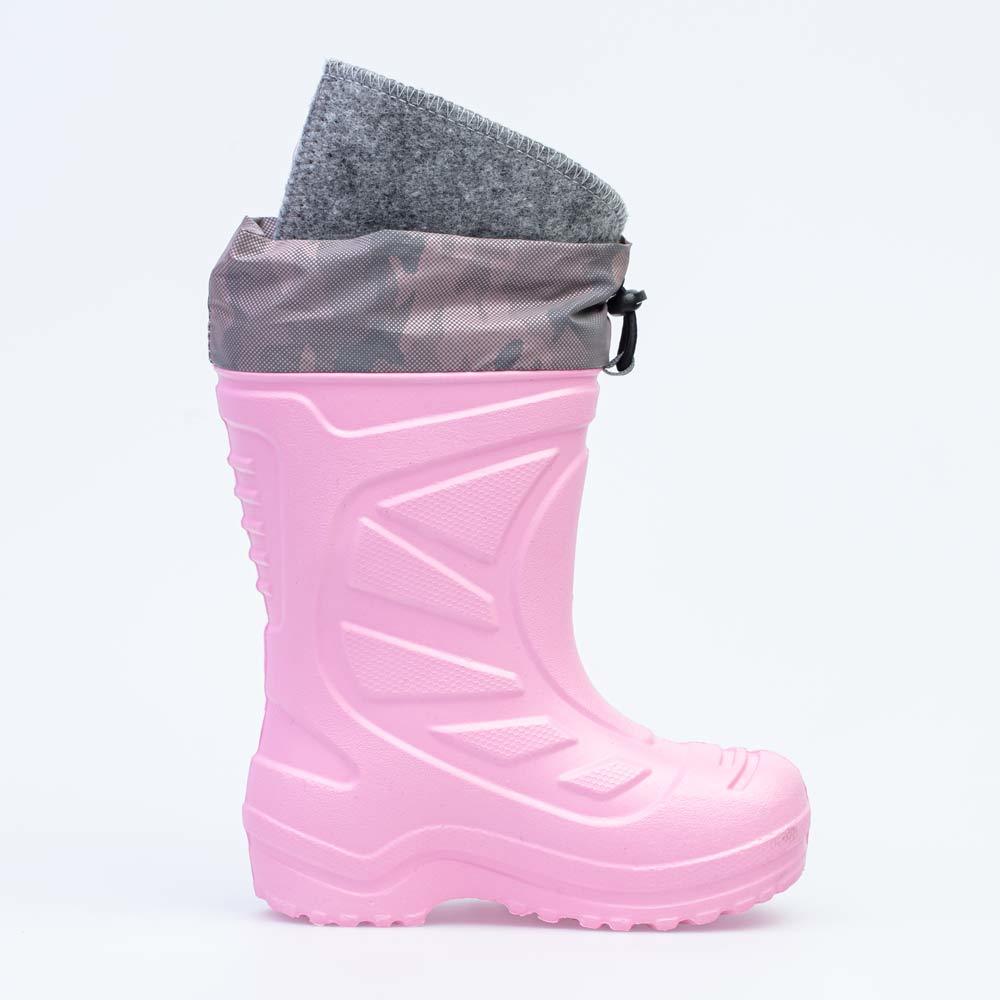 Описание Описание модели Водонепроницаемые сапоги из ЭВА предназначены для девочки и выполнены в приятном розовом цвете. Вкладной чулок с пришитой войлочной стелькой состоит из нескольких слоев: внутр... Показать описаниеенний из хлопкового флиса впитывает избыток влаги, утеплитель из полиэстера обеспечивает теплоизоляцию, внешний слой поддерживает форму и защищает от протирания. Чулок можно вынуть и просушить на батарее, а также при необходимости постирать в стиральной машине. Отворот из плотного нейлона с камуфляжным рисунком, в сочетании с сапожками, имеет привлекательный дизайн. Модель предназначена для детей школьного возраста, поэтому особенное внимание уделено ортопедическим свойствам: поддержка стопы обеспечивается анатомической формой колодки и дополнительным внешним карманом из искусственной кожи на вкладном чулке. Сделано в России.