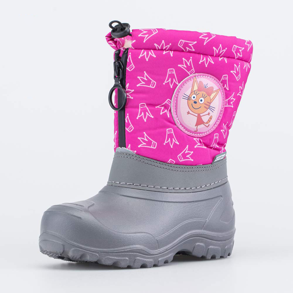 Описание Описание модели Детские сапожки Котофей сочетают в себе достоинства резиновых сапог и утепленной обуви и отлично подходят для ранней весны и поздней осени. Материал верха – легкий в уходе тек... Показать описаниестиль на основе нейлона, который защищает от ветра, грязи и брызг. Детская обувь оснащена светоотражающими элементами. В комплект входят две дополнительные нашивки, которые можно менять под настроение ребенка. Внутри детских сноубутсов вкладной чулок из шерстяного меха. Он согревает ножки, отводит от них влагу, дарит уют. При необходимости его можно вынуть и проветрить. Галоша из легкого материала ЭВА надежно защищает от луж и мокрого снега. Надежное крепление обеспечивает молния, а шнурок с утяжкой защищает от попадания снега внутрь обуви. Модель анатомически правильная: имеет небольшую приподнятость в пяточной части и круглый носок. Сделано в России. Внимание: во избежание намокания обуви не рекомендуется наступать в лужу выше уровня галоши!