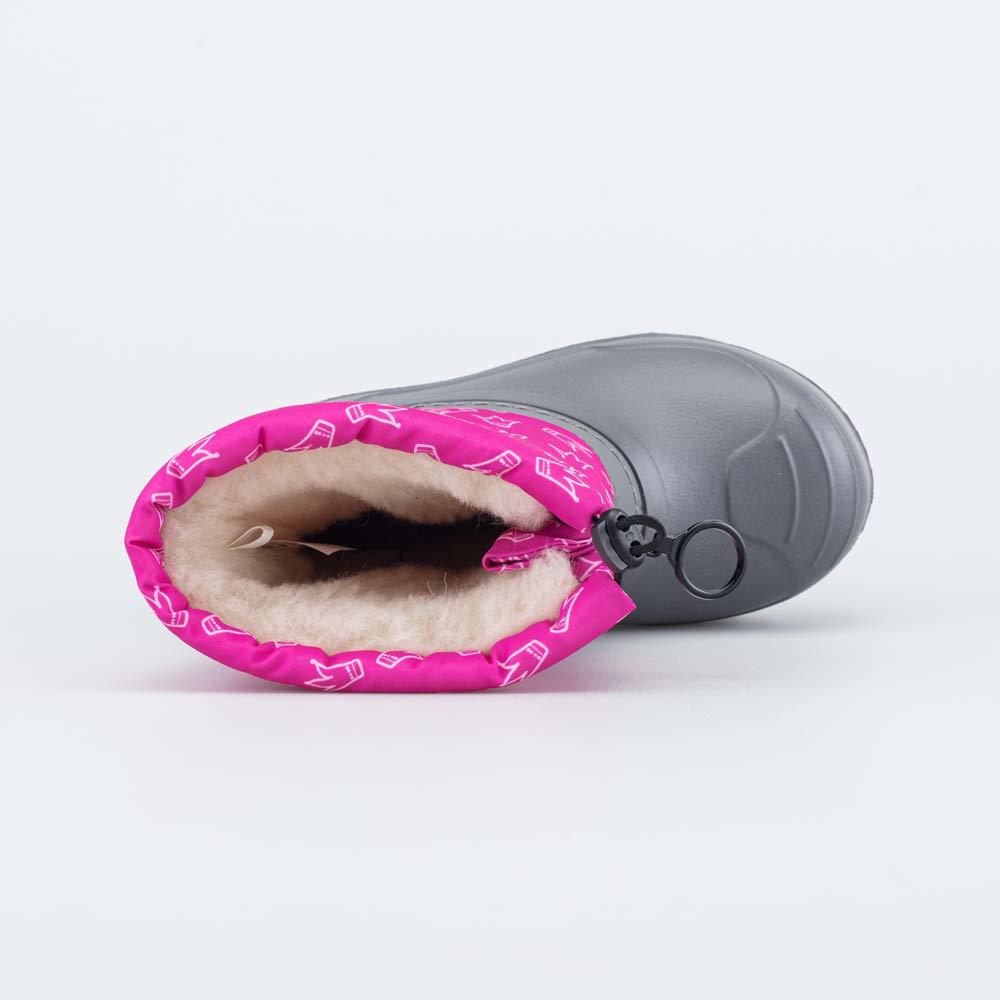 Описание Описание модели Теплые непромокаемые сапожки Snow&Rain для девочки серо-розового цвета Материал верха - текстиль на основе гипоаллергенного полиэстера, защищающий от ветра, грязи и брызг. Под... Показать описаниекладка и стелька на 80% состоят из натуральной шерсти, поэтому ножкам будет тепло, комфортно и безопасно. Галоша выполнена из ЭВА (этиленвинилацетата) - амортизирующего и легкого материала, который обеспечивает защиту от влаги. Молния позволяет быстро обуваться и разуваться, а шнурок с утяжкой - дополнительно защитить ногу от попадания грязи и брызг. Во избежание намокания обуви не рекомендуется наступать в лужу выше уровня галоши! Модель анатомически правильная: во внутреннем пространстве есть небольшая приподнятость пятки по отношению к носку, которая не заметна внешне, и круглый носок. Такая конструкция положительно влияет на правильное развитие стоп и всего опорно-двигательного аппарата. Сделано в России.
