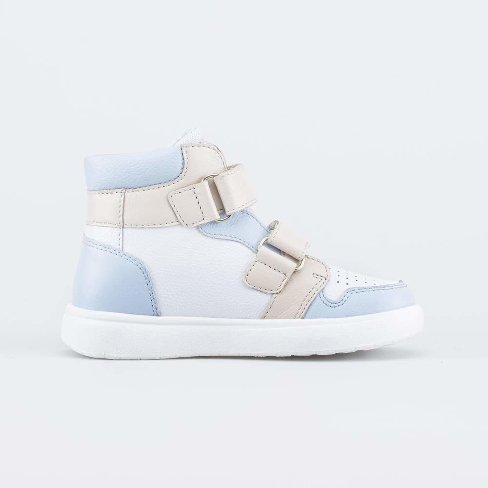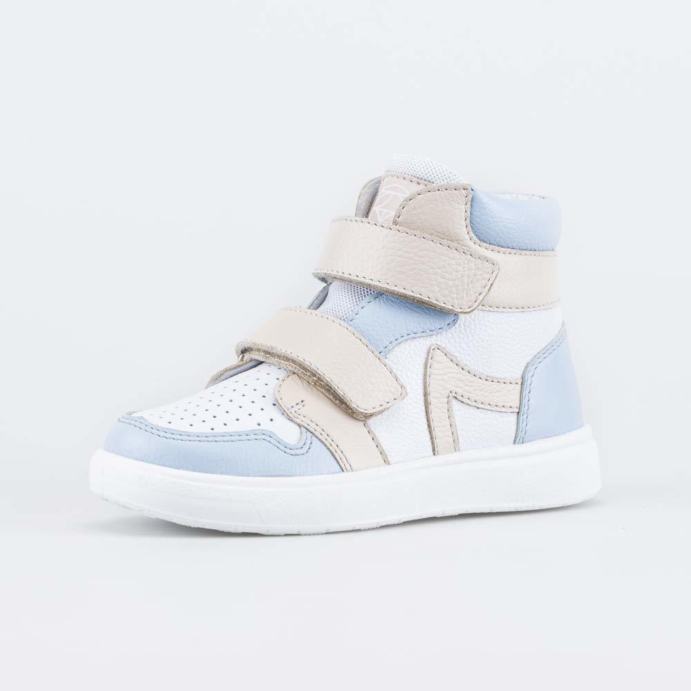 Описание Описание модели Кожаные кеды для мальчика, разработанные с учетом особенностей детской стопы, отлично дополняют образ юного модника. Эти светлые кеды имеют верх из гипоаллергенной и дышащей н... Показать описаниеатуральной кожи разных фактур: гладкая кожа, велюр. Подкладка из натурального хлопка обеспечивает максимально комфортный микроклимат внутри детской обуви. Формованная основа съемной хлопковой стельки амортизирует и поддерживает стопу. Детские кеды на липучках легко отрегулировать по полноте и подъему, ребенку удобно обуваться и разуваться. Литьевая подошва из полиуретана очень гибкая, легкая и амортизирующая. Образует наплыв на носочную часть, защищая ее от повреждений. Обувь для детей имеет правильную анатомическую конструкцию: задник необходимой жесткости, приподнятость пяточной части, округлый носок. Сделано в России.
