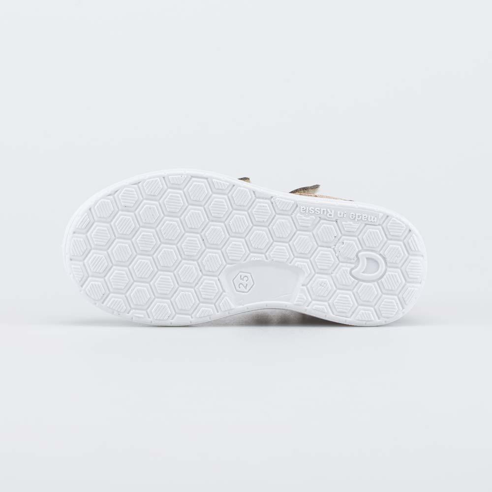 Описание Описание модели Детские кроссовки разработаны для девочки, которая уже начала активно ходить. Верх этих бежевых кроссовок выполнен из гипоаллергенной и дышащей натуральной кожи-велюра и украш... Показать описаниеен анималистичным принтом. Мягкий текстильный язычок из сетчатого материала повышает воздухопроницаемость детской обуви. Кожаные кроссовки с подкладкой их натурального хлопка обеспечивают здоровый микроклимат для детских ножек. Формованная основа съемной хлопковой стельки мягко амортизирует и поддерживает стопу. Кроссовки на липучках легко отрегулировать по подъему, в них удобно обувать ребенка. Модная утонченная подошва из резины обеспечивает амортизацию при ходьбе и образует наплыв на носочную часть, защищая ее от повреждений. Обувь для детей имеет анатомически правильную конструкцию: задник необходимой жесткости, приподнятость пяточной части, округлый носок. Для поддержания внешнего вида светлой обуви рекомендуем время от времени обрабатывать её защитными спреями и чистить мягкой щеткой. Сделано в России