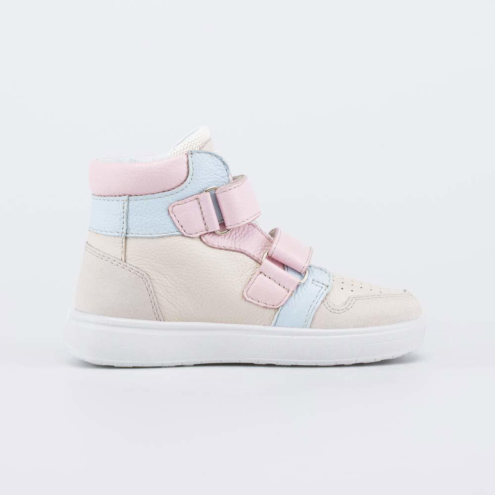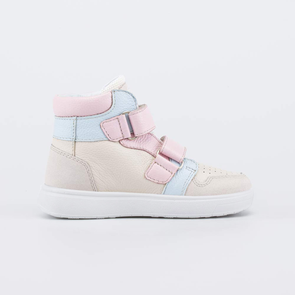 Описание Описание модели Демисезонные ботинки, созданные с учетом особенностей детской стопы, выполнены в сочетании нежных трендовых оттенков (бежевого, голубого и розового) и подходят для девочки шко... Показать описаниельного возраста. Верх, подкладка и формованная стелька изготовлены из натуральной кожи - дышащего материала, который создает оптимальный микроклимат внутри обуви. Несквозная перфорация обеспечивает дополнительную вентиляцию. Носочная и пяточная части защищены кожаными накладками с полиуретановым покрытием. Липучки-велькро позволяют быстро обуваться и разуваться, а также отрегулировать обувь по подъему. Подошва из ПУ (полиуретана) модной кедовой формы - гибкая и амортизирующая. Обувь предназначена для детей школьного возраста, поэтому особое внимание уделено правильной конструкции: модель имеет пятку необходимой жесткости, приподнятость пяточной части (незаметна внешне), круглый носок. Сделано в России.