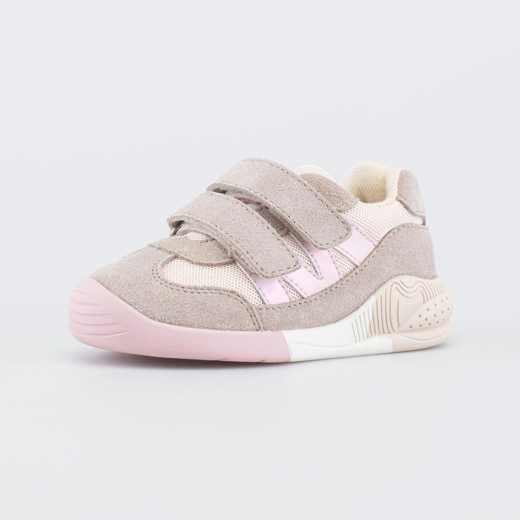 Описание Описание модели Детские кроссовки, выполненные в сочетании трендовых цветов (бежевого и розового), подходят для девочки, которая уже начала активно ходить. Верх изготовлен из сочетания натура... Показать описаниельной кожи-велюра и плотного сетчатого материала, который традиционно используется в спортивной обуви для оптимальной вентиляции ножки во время движения. Подкладка и стелька из хлопка обеспечивают комфортный и безопасный микроклимат внутри обуви. Формованная основа стельки амортизирует и поддерживает стопу. Задник необходимой жесткости фиксирует пяточку при ходьбе, а мягкий манжет дарит комфорт. Кроссовки на липучках надежно фиксируются на детской ножке. Легкая подошва из резины привлекает внимание расцветкой и рельефной формой. Образует наплыв на носочную часть, предохраняя ее повреждений, а пальчики от ударов. Для защиты от грязи и пыли время от времени обрабатывайте обувь специальным спреем и чистите мягкой щеткой. Машинная стирка исключена. Сделано в России.