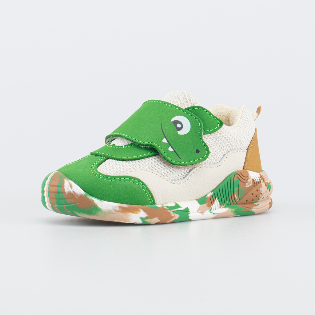 Описание Описание модели Яркие кроссовки, своим дизайном напоминающие о диких Джунглях, подходят для детей, которые уже начали активно ходить. Верх изготовлен из вязаного полиэстера, обладающего высок... Показать описаниеой воздухопроницаемостью. Фигурные детали из искусственной кожи разных фактур создают каркас модели и подчеркивают современный дизайн. Подкладка из хлопка обеспечивает комфортный и безопасный микроклимат внутри обуви. Формованная основа съемной кожаной стельки амортизирует и поддерживает стопу. Задник необходимой жесткости фиксирует пяточку при ходьбе, а мягкий манжет дарит комфорт. Кроссовки на липучках надежно фиксируются на детской ножке. Легкая подошва из резины привлекает внимание расцветкой и рельефной формой. Образует наплыв на носочную часть, предохраняя ее повреждений, а пальчики от ударов. Для защиты от грязи и пыли время от времени обрабатывайте обувь специальным спреем и чистите мягкой щеткой. Машинная стирка исключена. Сделано в России.