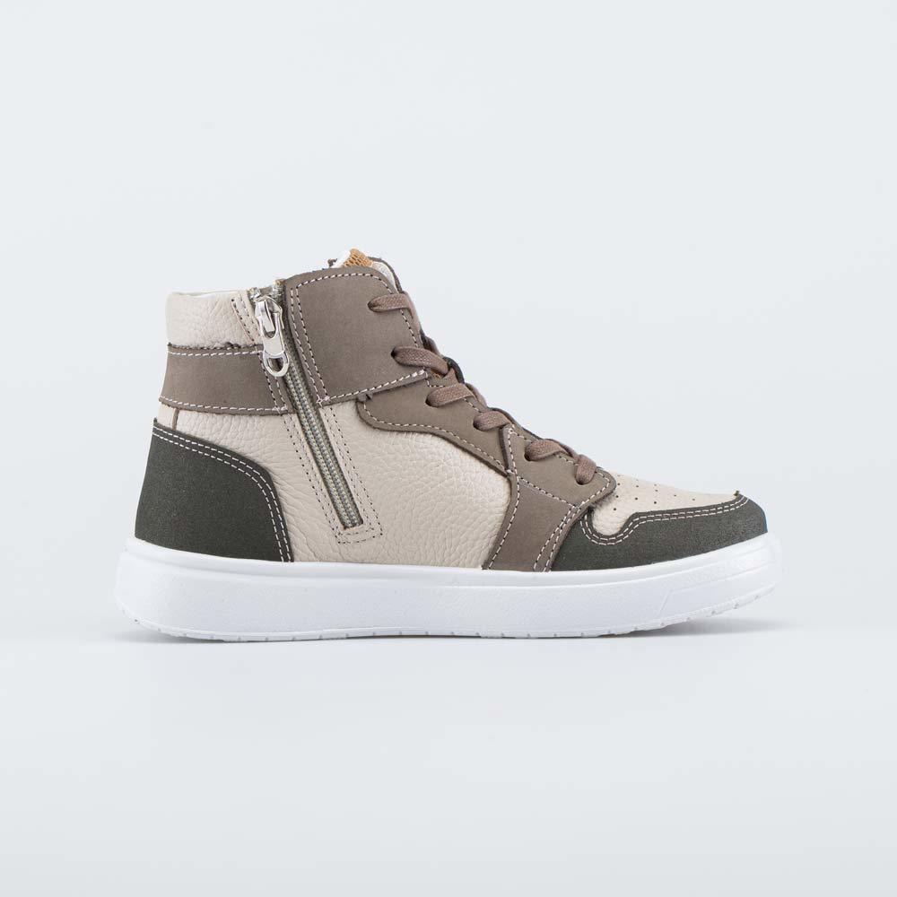 Описание Описание модели Демисезонные кожаные ботинки разработаны для мальчика-подростка. Верх изготовлен из натуральной гладкой кожи и кожи-нубука, выкрашенных в тренде колорблок. Он заключается в га... Показать описаниермоничном сочетании разных цветов (оливкового и бежевого) и придает модели современный вид. Подкладка и формованная стелька также изготовлены из натуральной кожи, что обеспечивает оптимальный микроклимат внутри обуви. Несквозная перфорация создает дополнительную вентиляцию. Шнурки дают возможность отрегулировать обувь по подъему, а молния - быстро обуваться и разуваться. Носок и пятка защищены кожаными накладками с ПУ-напылением, что позволяет увеличить износостойкость изделия. Подошва из ПУ (полиуретана) модной кедовой формы – гибкая и амортизирующая. Модель анатомически-правильная: разработана с учетом особенностей подростковой стопы. Сделано в России.