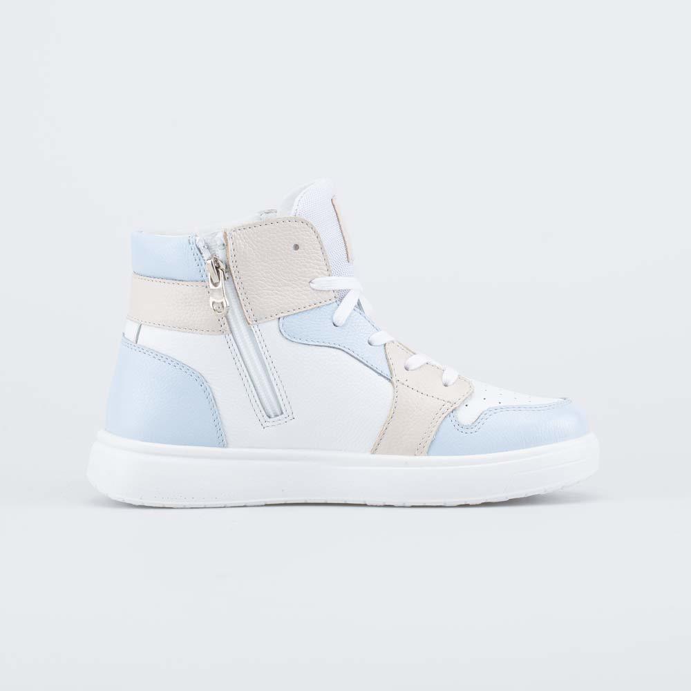 Описание Описание модели Демисезонные кожаные ботинки для девочки-подростка выполнены в сочетании трендовых цветов: бежевого и голубого. Верх, подкладка и формованная стелька изготовлены из натурально... Показать описанией кожи - дышащего материала, который обеспечивает оптимальный микроклимат внутри обуви. Молния обеспечивает максимальную раскрываемость модели при обувании, а шнуровка позволяет подогнать обувь по ноге и надежно её зафиксировать. Тренд колорблок, который заключается в гармоничном сочетании разных цветов, придает модели современный внешний вид. Подошва из ПУ (полиуретана) модной кедовой формы - гибкая и амортизирующая. Во внутреннем пространстве имеет приподнятость пяточной части, которая незаметна внешне. Модель анатомически-правильная: разработана с учетом особенностей подростковой стопы. Сделано в России.