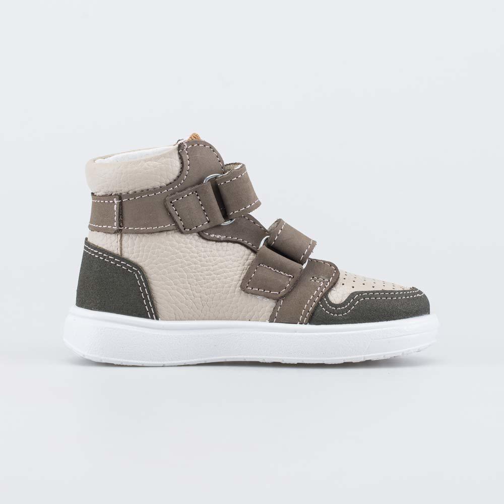 Описание Описание модели Демисезонные ботинки, созданные с учетом особенностей детской стопы, разработаны для мальчика. Верх изготовлен из натуральной гладкой кожи и кожи-нубука, выкрашенных в тренде ... Показать описаниеколорблок. Он заключается в гармоничном сочетании разных цветов (оливкового и бежевого) и придает модели современный вид. Подкладка и формованная стелька также изготовлены из натуральной кожи, что обеспечивает оптимальный микроклимат внутри обуви. Несквозная перфорация создает дополнительную вентиляцию. Липучки-велькро позволяют быстро обуваться и разуваться, а также отрегулировать обувь по подъему. Носок и пятка защищены кожаными накладками с ПУ-напылением, что позволяет увеличить износостойкость изделия. Подошва из ПУ (полиуретана) модной кедовой формы – гибкая и амортизирующая. Обувь предназначена для детей дошкольного возраста, поэтому особое внимание уделено правильной конструкции: модель имеет пятку необходимой жесткости, приподнятость пяточной части (незаметна внешне), круглый носок. Сделано в России.