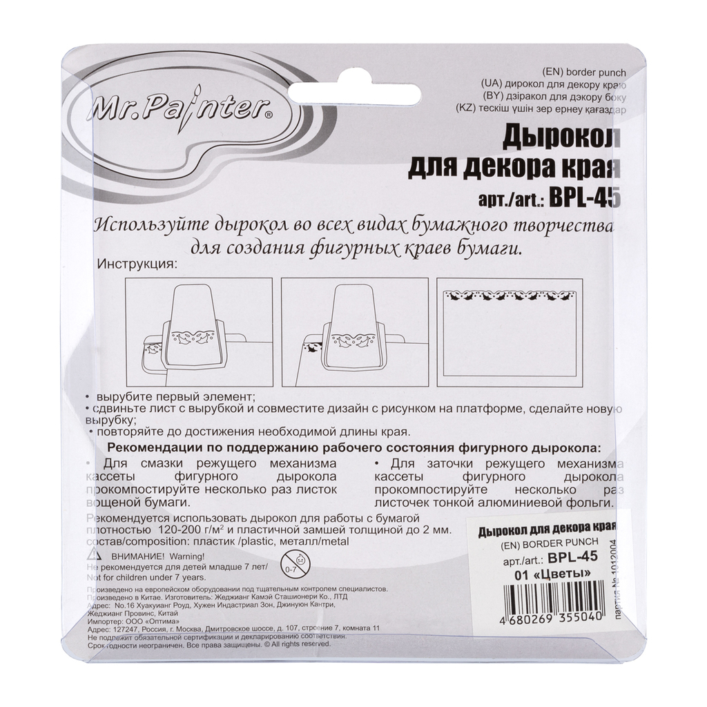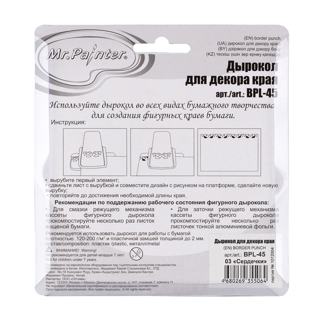 "Mr.Painter" BPL-45 Дырокол для декора края 4.5 см 2-й сорт"Mr.Painter" BPL-45 Дырокол для декора края 4.5 см 2-й сорт