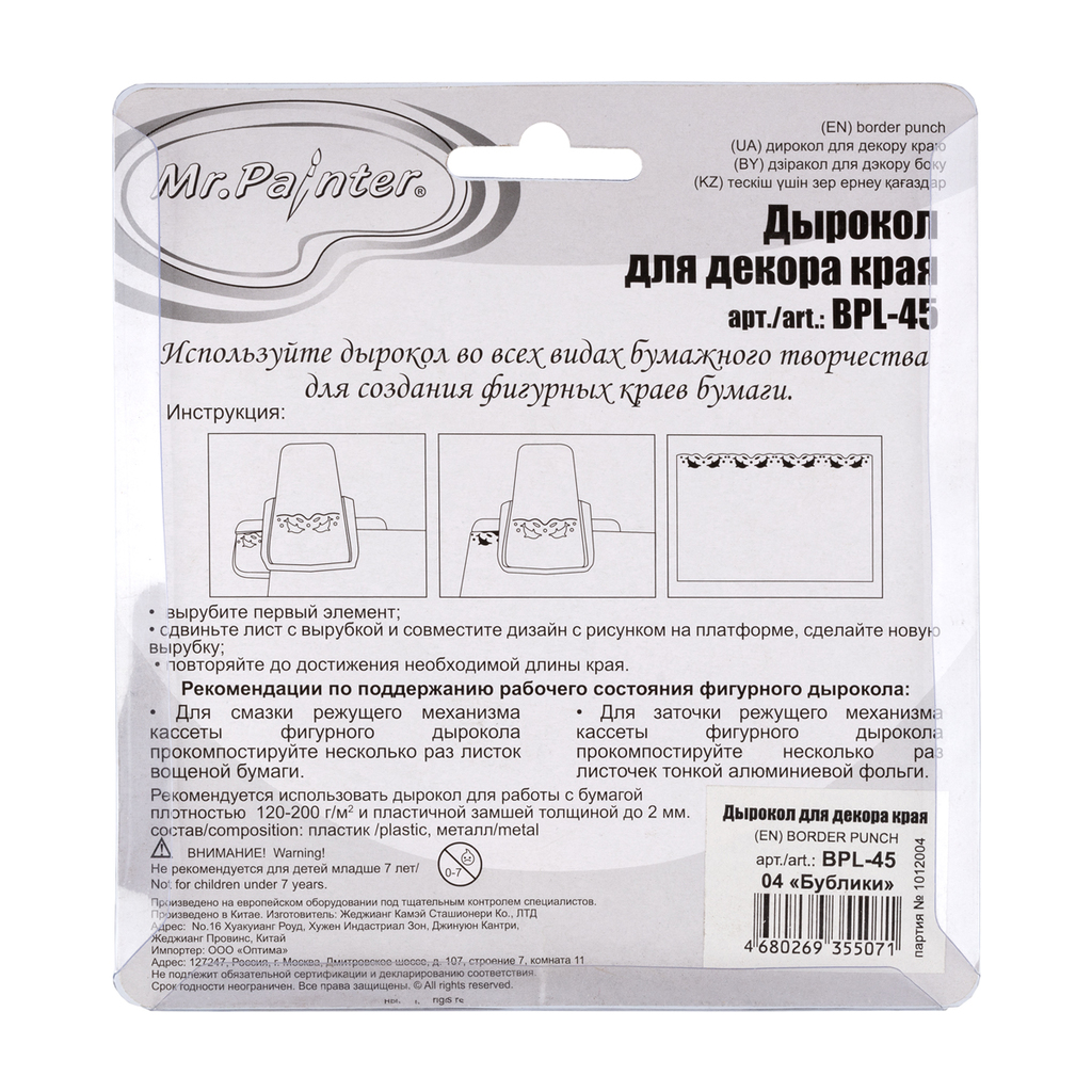 "Mr.Painter" BPL-45 Дырокол для декора края 4.5 см 2-й сорт Вопросы по товару