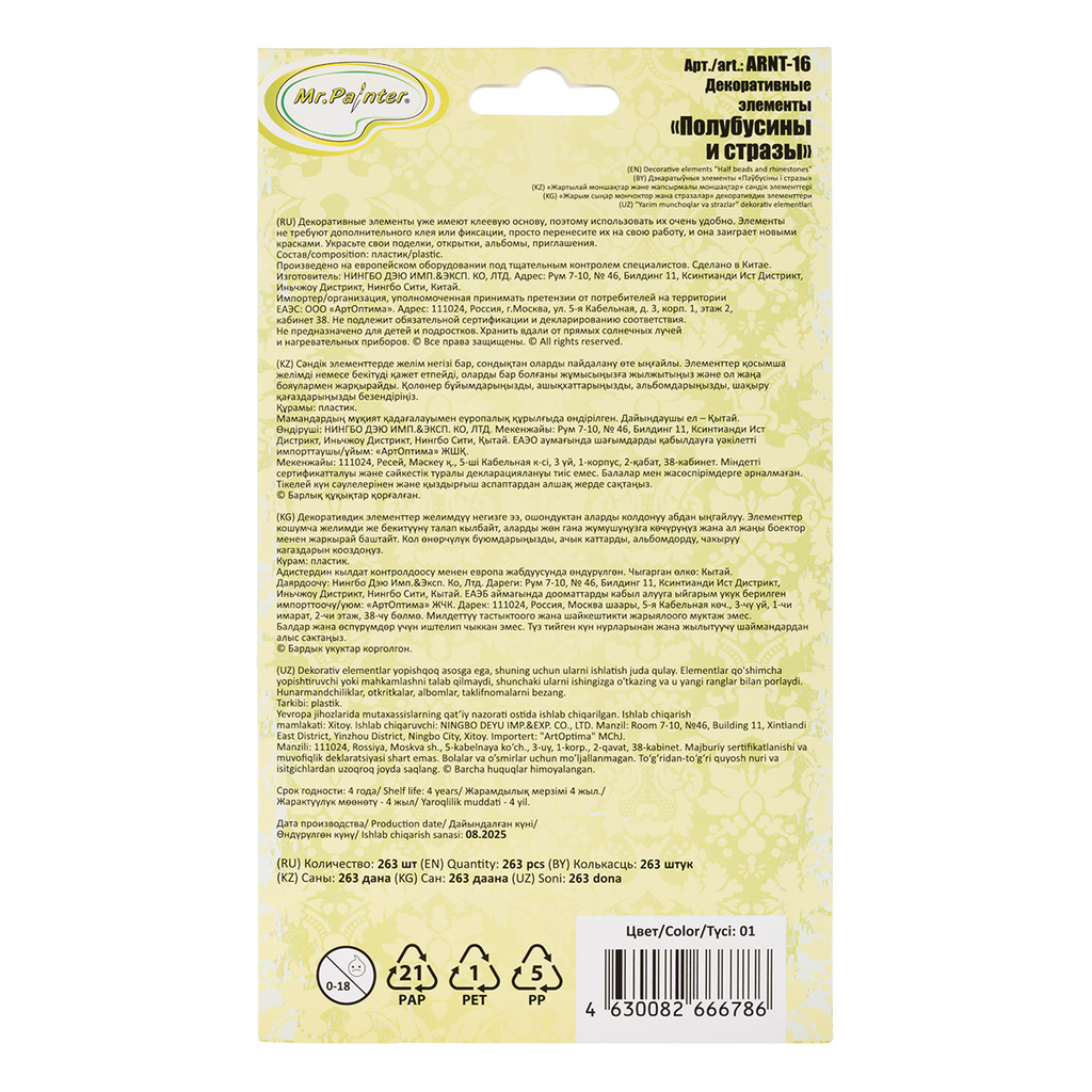 "Mr.Painter" ARNT-16 Декоративные элементы "Полубусины и стразы" 5 х 263 шт.