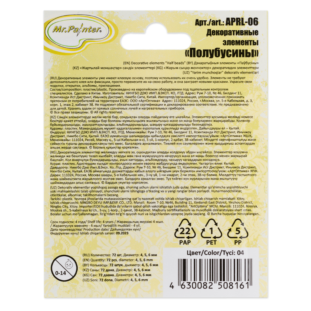 "Mr.Painter" APRL-06 Декоративные элементы "Полубусины" 5 х 72 шт. Вопросы по товару