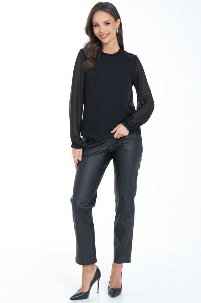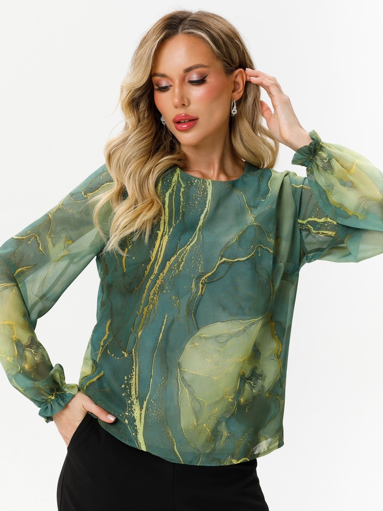 Модель выполнена из высококачественного шифона и трикотажной подкладочной ткани. Состав: 100% полиэстер. Очаровательная свободная шифоновая блузка, подчеркивающее женственность - отличное решение на к... Показать описаниеаждый день или на праздник для современной стильной женщины. Шикарная модель с объемными длинными рукавами выполнена из высококачественного шифона. Круглая горловина оформлена рюшей с застежкой на пуговицу на спине.Нежная блузка из шифона на трикотажном подкладе, по переду сделаны вытачки на грудь, рукава втачные пышные, длинные, снизу собраны на резинку. Длина рукава во всех размерах: 62 см Длина изделия: 44 р-60 см; 46 р-62 см; 48 р-62 см; 50 р-63 см; 52 р-63 см; 54 р-63 см Замеры изделия: 44 размер: по груди 96 см, бедра 104 см 46 размер: по груди 100 см, бедра 108 см 48 размер: по груди 104 см, бедра 112 см 50 размер: по груди 108 см, бедра 116 см 52 размер: по груди 114 см, бедра 120 см 54 размер: по груди 118 см, бедра 124 см