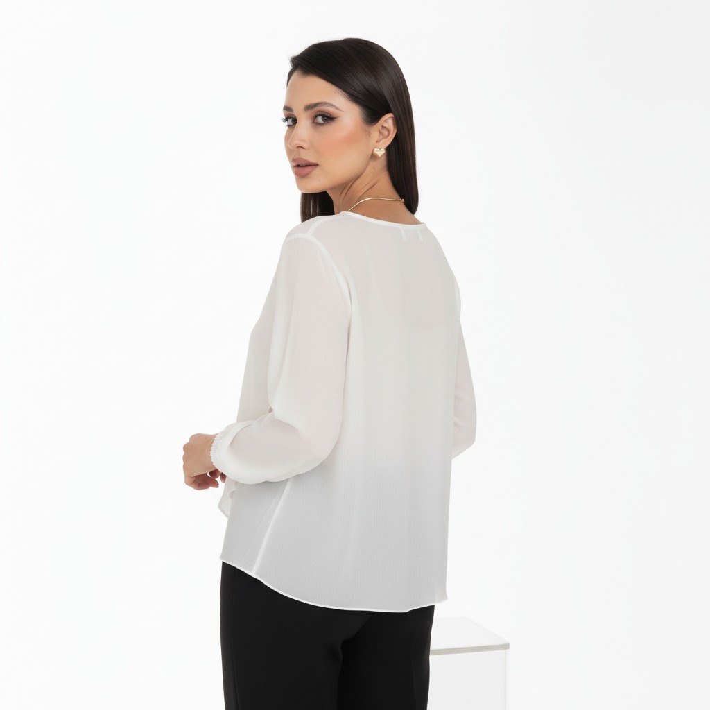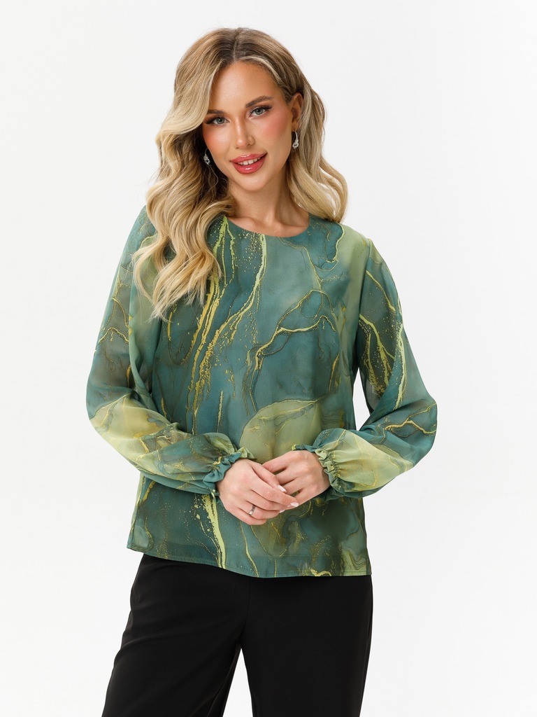 Модель выполнена из высококачественного шифона и трикотажной подкладочной ткани. Состав: 100% полиэстер. Очаровательная свободная шифоновая блузка, подчеркивающее женственность - отличное решение на к... Показать описаниеаждый день или на праздник для современной стильной женщины. Шикарная модель с объемными длинными рукавами выполнена из высококачественного шифона. Круглая горловина с застежкой на пуговицу на спине. Нежная блузка из шифона на трикотажном подкладе, по переду сделаны вытачки на грудь, рукава втачные пышные, длинные, снизу собраны на резинку. Длина рукава во всех размерах: 62 см Длина изделия: 44 р-60 см; 46 р-62 см; 48 р-62 см; 50 р-63 см; 52 р-63 см; 54 р-63 см Замеры изделия: 44 размер: по груди 96 см, бедра 104 см 46 размер: по груди 100 см, бедра 108 см 48 размер: по груди 104 см, бедра 112 см 50 размер: по груди 108 см, бедра 116 см 52 размер: по груди 114 см, бедра 120 см 54 размер: по груди 118 см, бедра 124 см
