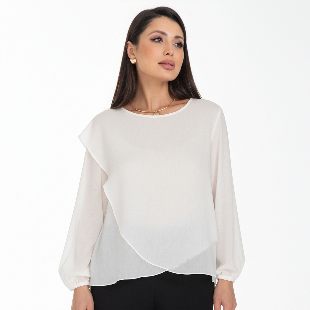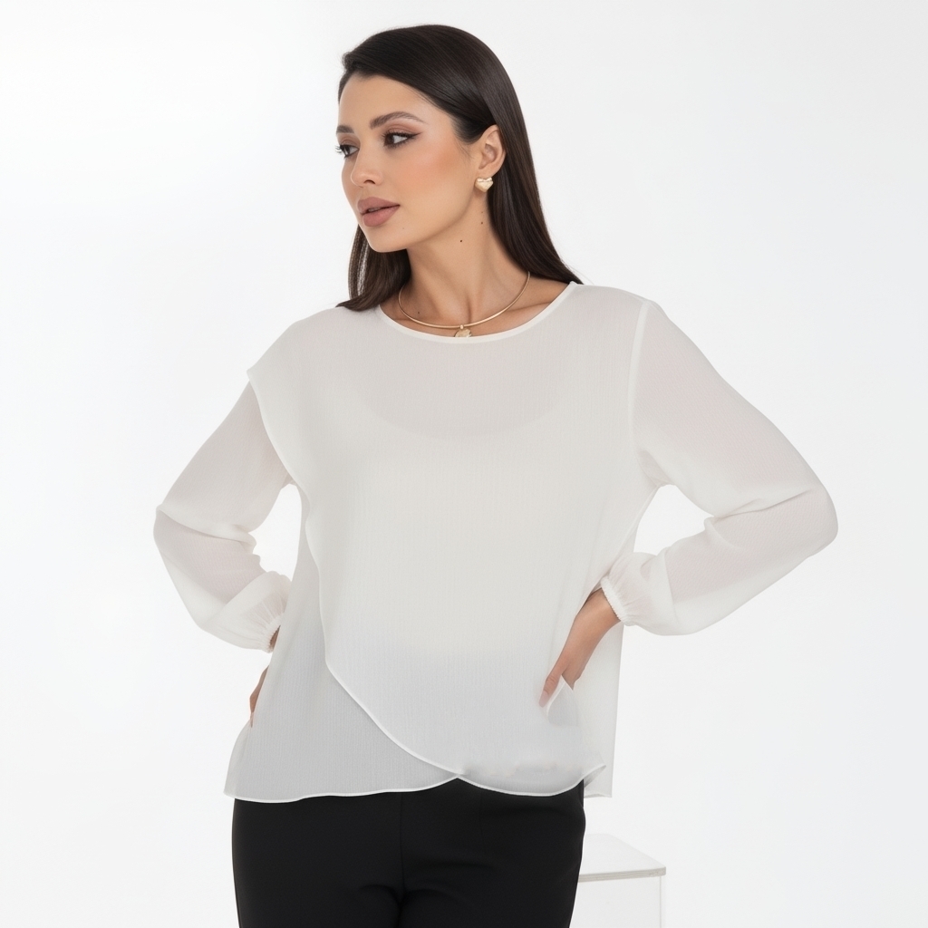 Модель выполнена из креп шифона Состав : Полиэстер 100% Бестселлер! Дизайнерская шифоновая блузка Diolche - идеальный выбор для создания стильного и запоминающегося образа. Ассиметричный крой придают... Показать описание блузке изысканность и неповторимость. Благодаря своему универсальному дизайну и качеству исполнения, эта блузка-туника с длинными пышными рукавами станет вашим надежным помощником в создании идеального образа и скроет все недостатки фигуры. Благодаря многослойности ,блуза не просвечивает . В обработке срезов использован люксовый способ подгибки "московский шов". Эта блуза уместна везде - в офисе, на прогулке или празднике. Можно носить как с классическими брюками и юбками, так и с джинсами. Прекрасно смотрится как в заправленном состоянии, так и на выпуск. Длина изделия: 44 р-63 см, 46 р-65 см, 48 р-65 см, 50 р-65 см Замеры по груди: 44 р-102 см, 46 р-106 см, 48 р-110 см, 50 р-114 см Длина рукава во всех размерах 60 см