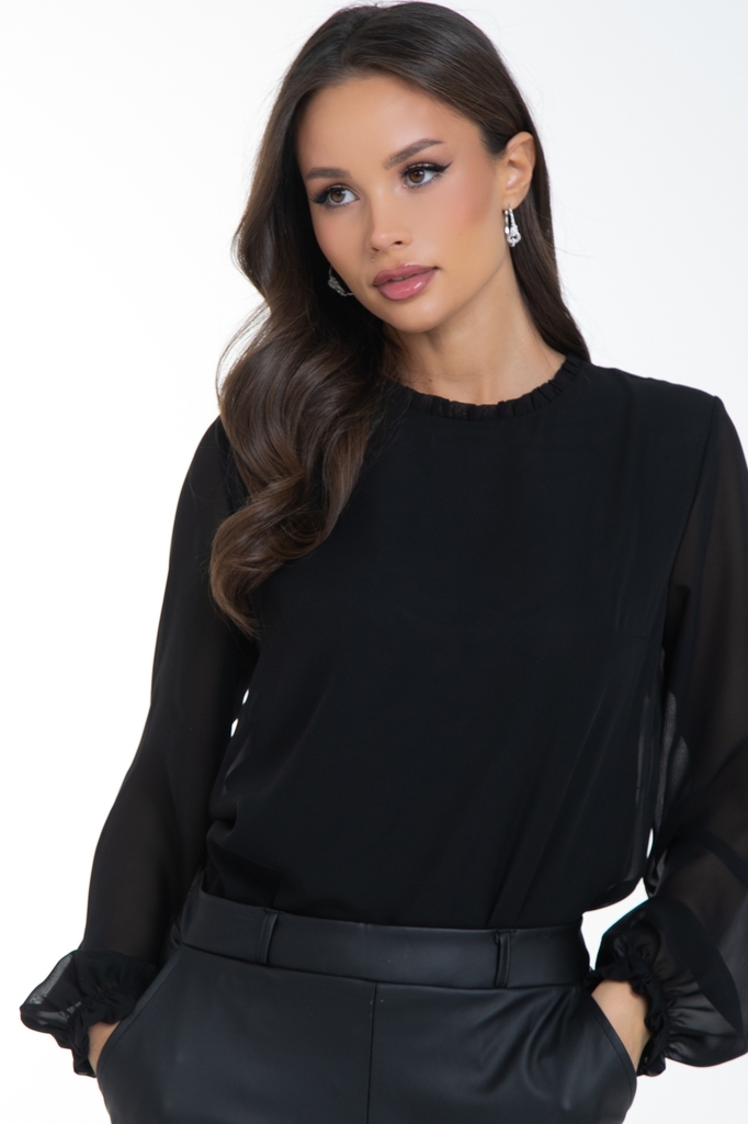 Модель выполнена из шифона высокого качества и трикотажной подкладочной ткани. Состав: 100% полиэстер. Очаровательная свободная шифоновая блузка, подчеркивающее женственность - отличное решение на каж... Показать описаниедый день или на праздник для современной стильной женщины. Шикарная модель с объемными длинными рукавами выполнена из высококачественного шифона. Круглая горловина оформлена рюшей с застежкой на пуговицу на спине.Нежная блузка из шифона на трикотажном подкладе, по переду сделаны вытачки на грудь, рукава втачные пышные, длинные, снизу собраны на резинку. Длина рукава: во всех размерах 62 см Длина изделия: 44 р-60 см.46 р-62 см,48 р-62 см,50 р-63 см,52 р-63 см,54 р-63 Замеры изделия: 44 размер: по груди 96 см, бедра 104 см 46 размер: по груди 100 см, бедра 108 см 48 размер: по груди 104 см, бедра 112 см 50 размер: по груди 108 см, бедра 116 см 52 размер: по груди 114 см, бедра 120 см 54 размер: по груди 118 см, бедра 124 см