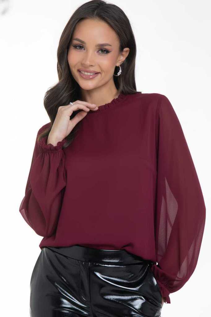 Модель выполнена из высококачественного шифона и трикотажной подкладочной ткани. Состав: 100% полиэстер. Очаровательная свободная шифоновая блузка, подчеркивающее женственность - отличное решение на к... Показать описаниеаждый день или на праздник для современной стильной женщины. Шикарная модель с объемными длинными рукавами выполнена из высококачественного шифона. Круглая горловина оформлена рюшей с застежкой на пуговицу на спине. Нежная блузка из шифона на трикотажном подкладе, по переду сделаны вытачки на грудь, рукава втачные, пышные, длинные, снизу собраны на резинку. Длина рукава во всех размерах: 62 см Длина изделия: 44 р-60 см; 46 р-62 см; 48 р-62 см; 50 р-63 см; 52 р-63 см; 54 р-63 см Замеры изделия: 44 размер: по груди 96 см, бедра 104 см 46 размер: по груди 100 см, бедра 108 см 48 размер: по груди 104 см, бедра 112 см 50 размер: по груди 108 см, бедра 116 см 52 размер: по груди 114 см, бедра 120 см 54 размер: по груди 118 см, бедра 124 см