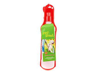 Поилка для собак это незаменимый аксессуар для питомца на прогулке, в дороге и путешествии. Это пластиковая бутылка, к которой прикреплена специальная мисочка, куда подаётся вода. Вам не нужно думать... Показать описание, во что налить воду, чтобы собака могла попить. Для подачи воды необходимо перевернуть бутылку до специального ограничителя и немного надавить на неё.