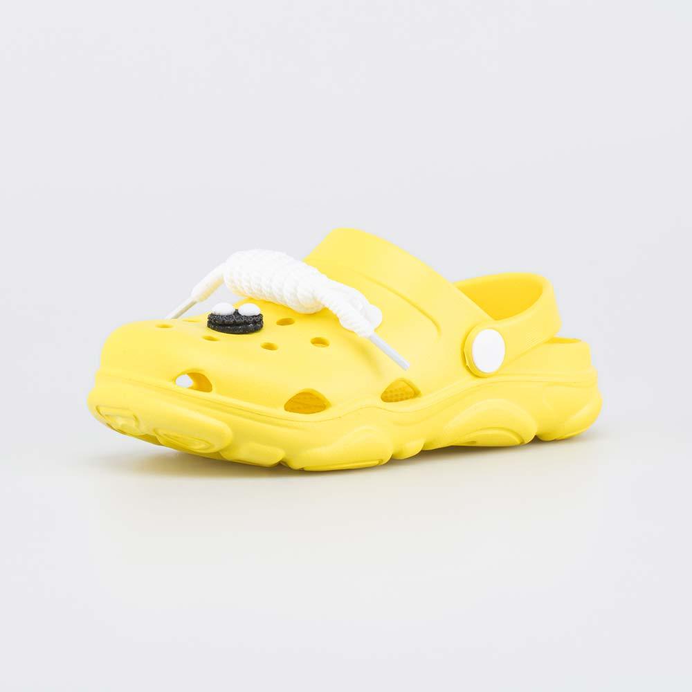 Описание Описание модели Летняя пляжная обувь с закрытом носом полностью выполнена из материала ЭВА – такой вариант часто называют «резиновые сабо» или «клоги». Пляжные сабо для мальчика или для девоч... Показать описаниеки отлично подходят как обувь для купания, для моря или для бассейна. ЭВА – лёгкий, гибкий, эластичный материал, который хорошо амортизирует. Его легко мыть, он быстро сохнет, устойчив к антигрибковым препаратам, что важно в бассейне или аквапарке. Детская пляжная обувь с закрытом носом защищает пальцы от песка и камней, а перфорация обеспечивает вентиляцию. Перекидной ремешок надежно фиксирует обувь на ноге. Массивная шнуровка и забавная «глазастая» котофишка поднимают настроение. Анатомически правильная внутренняя форма соответствует изгибам детской стопы и обеспечивает необходимую поддержку. Рельефные элементы на стельке защищают мокрые ножки от скольжения. Пляжные сабо можно украсить дополнительными котофишками.