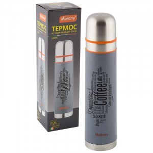Термос FORTE 0,5л, узк.горло с кноп. 2 чашки, двойн.стенка, нерж.сталь, 3694 Mallony