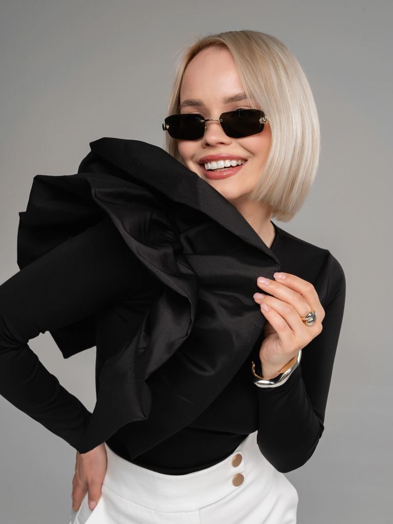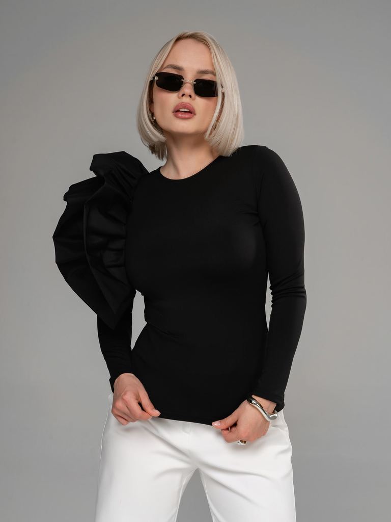 Прежняя цена - 1013 руб. Описание и параметры Женский лонгслив из бифлекса черного цвета с длинными рукавами прилегающего силуэта от российского производителя "FiftyPates". Модель выполнена из плотног... Показать описаниео матового синтетического полотна , который не теряет форму и обладает очень высокой эластичностью. При этом материал не мнется и не нуждается в глажении. На правом плече объемный атласный волан, который придает элегантности вашему образу. из бифлекса черного цвета Лонгслив женский красиво облегает фигуру и не стесняет движений. Вы будете выглядеть превосходно в любой ситуации - будь это повседневный или нарядный образ для праздничных и вечерних выходов. Лонгслив женский с длинными рукавами можно носить как блузку с юбкой или брюками. Идеально на весну и лето. Стильный лонгслив создаёт чувственный и эротичный образ, при этом он подчеркнет вашу красоту и индивидуальность. Артикул FP10035BIch Цвет Черный Материал Бифлекс Состав 87%полиэст.,13%лайкра