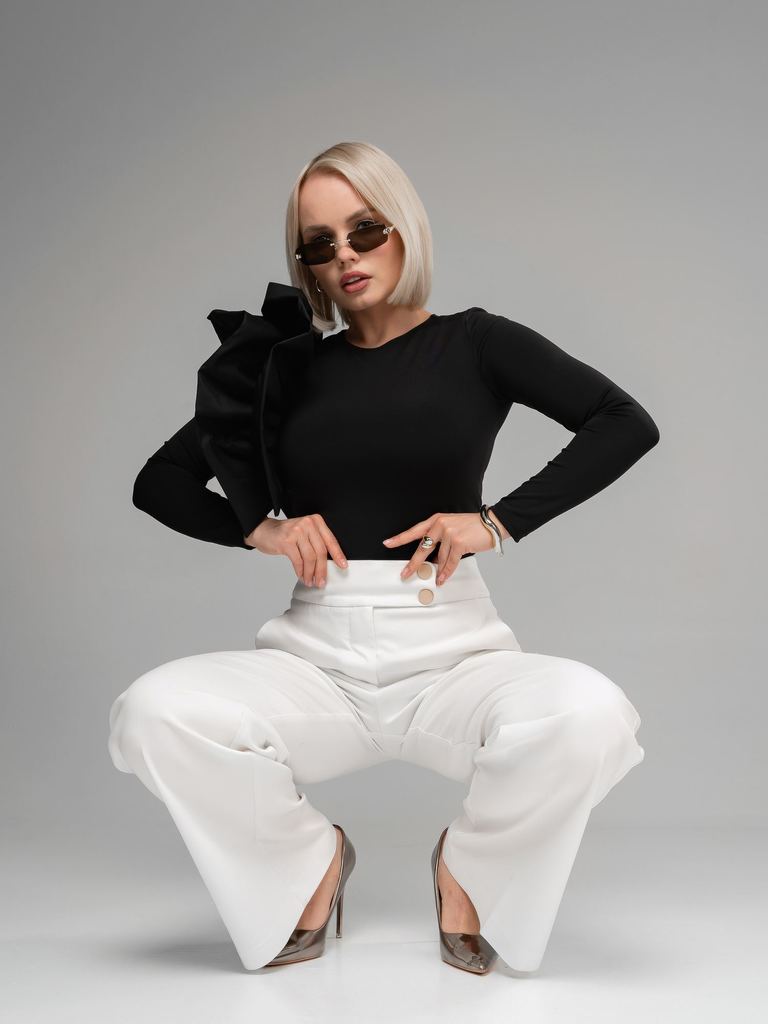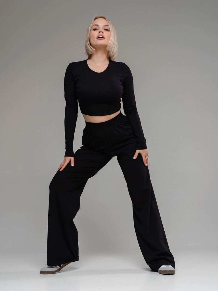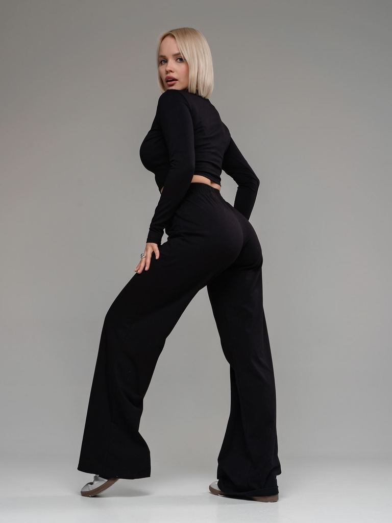 Прежняя цена - 1272 руб. Описание и параметры Оригинальный костюм-двойка из кулирки черного цвета . Укороченный кроп с длинными прямыми рукавами и округлой горловиной. Расширенные брюки прямого силуэт... Показать описаниеа с широким цельнокроенным поясом на резинке. Изделие выполнено из трикотажа премиального качества - ПЕНЬЕ, с содержанием хлопка более 95% Артикул FP30012KLch Цвет Черный Материал Кулирка с лайкрой Состав 95%хлопок, 5%эластан Размеры * 2XS Лонгслив Длина изделия: 41 Длина рукава: 59 Обхват груди: 80 Ширина изделия под проймой: 39 Брюки Длина изделия: 106 Длина по шаговому шву: 78 Обхват по бёдрам: 88 Обхват талии: 60 Ширина брюк внизу: 25 * XS Лонгслив Длина изделия: 42 Длина рукава: 59 Обхват груди: 84 Ширина изделия под проймой: 41 Брюки Длина изделия: 107 Длина по шаговому шву: 83 Обхват по бёдрам: 92 Обхват талии: 64 Ширина брюк внизу: 35 * S Лонгслив Длина изделия: 42 Длина рукава: 59 Обхват груди: 88 Ширина изделия под проймой: 43 Брюки Длина изделия: 107 Длина по шаговому шву: 83 Обхват по бёдрам: 96 Обхват талии: 68 Ширина брюк внизу: 36 * M Лонгслив Длина изделия: 43 Длина рукава: 60 Обхват груди: 92 Ширина изделия под проймой: 45 Брюки Длина изделия: 107 Длина по шаговому шву: 83 Обхват по бёдрам: 100 Обхват талии: 72 Ширина брюк внизу: 37 * L Лонгслив Длина изделия: 44 Длина рукава: 62 Обхват груди: 96 Ширина изделия под проймой: 47 Брюки Длина изделия: 112 Длина по шаговому шву: 86 Обхват по бёдрам: 104 Обхват талии: 76 Ширина брюк внизу: 38
