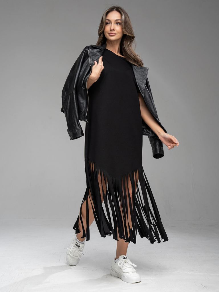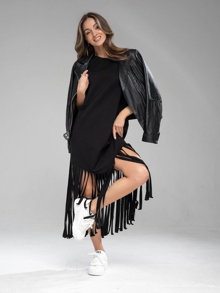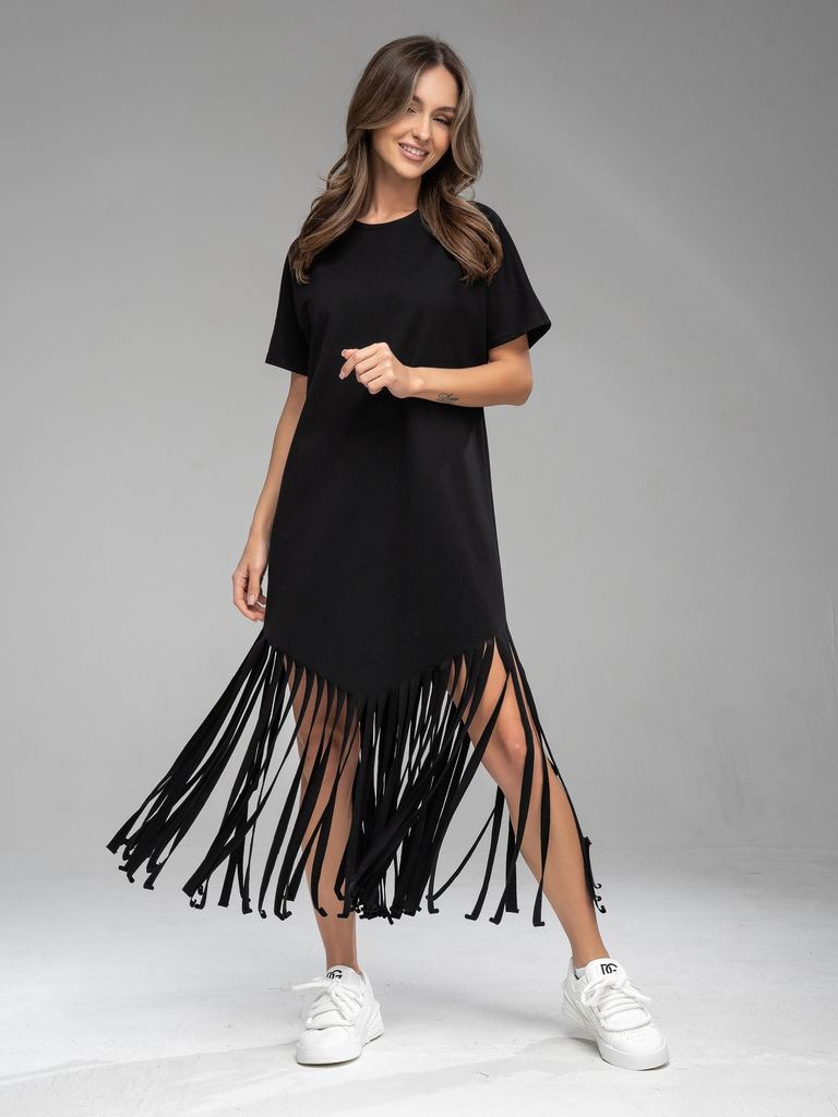 Прежняя цена - 853 руб. Описание и параметры Платье-туника из футера черного цвета . Cвободного силуэта с короткими цельнокроенными рукавами. Бахрома Изделие выполнено из трикотажа премиального качест... Показать описаниева - ПЕНЬЕ, с содержанием хлопка более 92% Артикул FP90008FUch Цвет Черный Материал Футер Состав 92%хлопок,8%полиэст. Размеры * XS Длина изделия: 126 Обхват груди: 84 Ширина изделия под проймой: 49