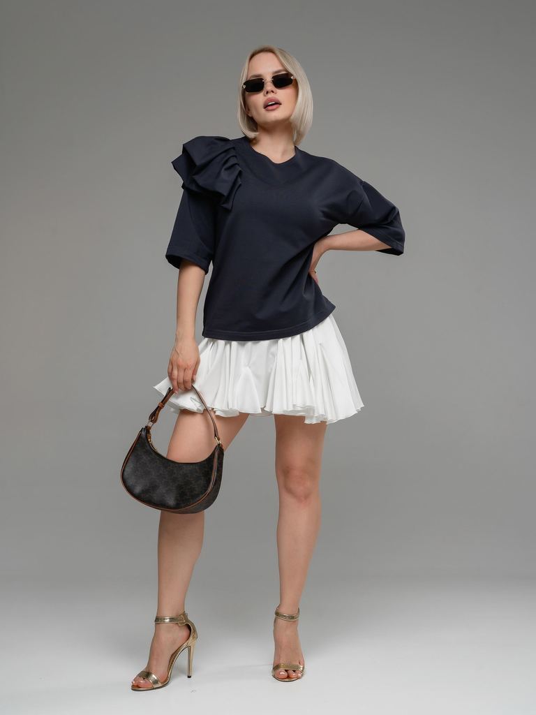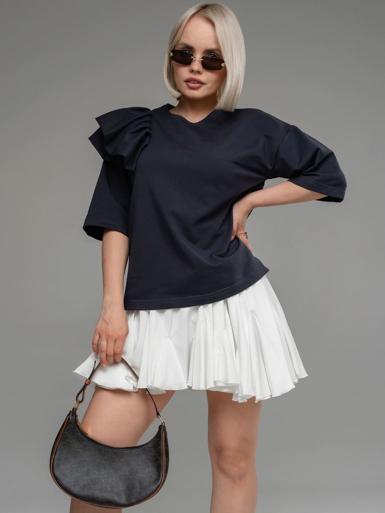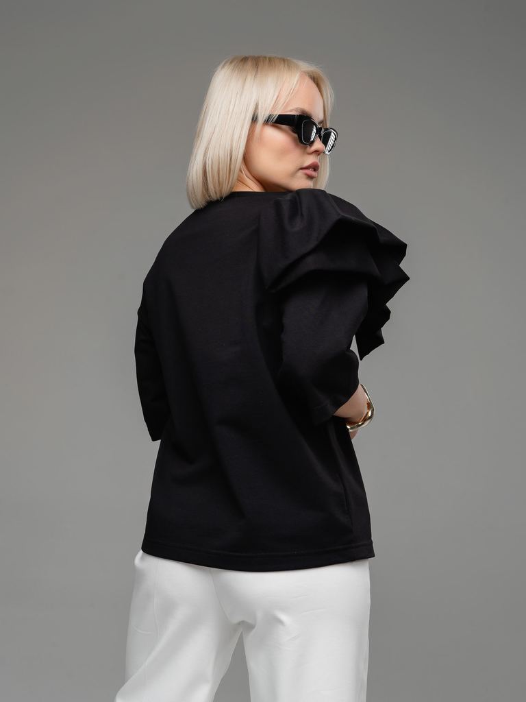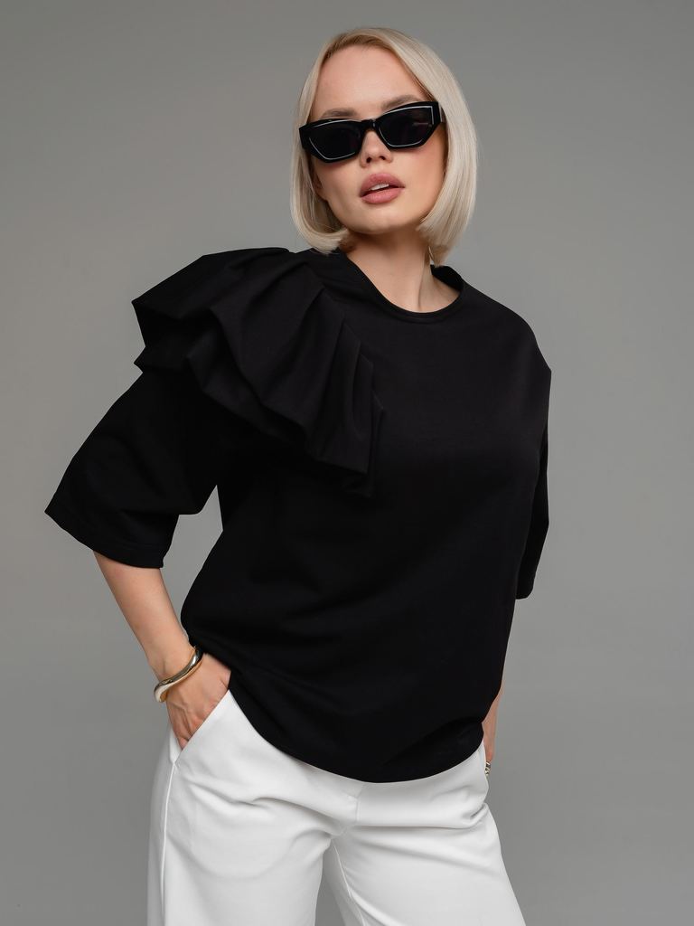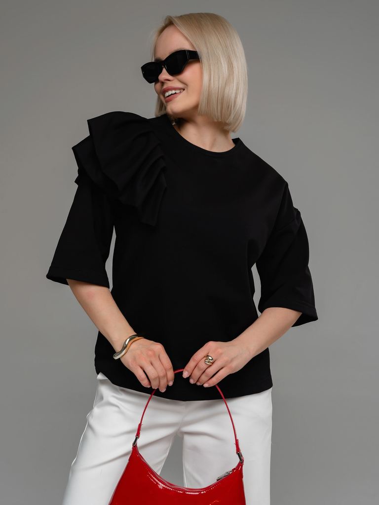 Прежняя цена - 1172 руб. Описание и параметры Футболка женская из футера черного цвета в стиле Оверсайз , рукавами длиной до локтя и объемным воланом на плече . Высокое содержание хлопка в составе 92 ... Показать описание% позволит почувствовать максимальный комфорт и уверенность в себе, а добавление эластана 8 % придаcт этому изделию дополнительную прочность и износостойкость. Оверсайз стиль, рукава длиной до локтя и объемный волан - сделают элегантным ваш образ. Вы будете выглядеть превосходно в любой ситуации - будь это повседневный или наряд или для праздничных и вечерних выходов. Свободная, удлиненная футболка идеальный вариант для летнего периода. Благодаря своей универсальности данную модель можно носить как футболку с рюшами или женскую блузку. Изделие выполнено из трикотажа премиального качества - ПЕНЬЕ, с содержанием хлопка более 92% Артикул FP10037FUch Цвет Черный Материал Футер Состав 92%хлопок,8%полиэст. Размеры * S Длина изделия: 69 Длина рукава: 26 Обхват груди: 88 * XL Длина изделия: 71 Длина рукава: 27 Обхват груди: 100