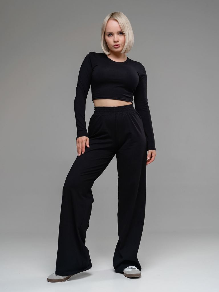 Прежняя цена - 1200 руб. Описание и параметры Женские широкие брюки-палаццо из футера черного цвета , с боковыми карманами. Завышенная линия талии, высокий пояс на эластичной резинке. Изделие выполнен... Показать описаниео из трикотажа премиального качества - ПЕНЬЕ, с содержанием хлопка более 92% Артикул FP50011FUch Цвет Черный Материал Футер Состав 92%хлопок,8%полиэст. Размеры * 2XS Длина изделия: 106 Длина по шаговому шву: 83 Обхват по бёдрам: 84 * XL Длина изделия: 112 Длина по шаговому шву: 86 Обхват по бёдрам: 104