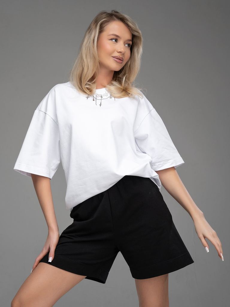 Прежняя цена - 732 руб. Описание и параметры Укороченные шорты из футера молочного цвета свободного силуэта с боковыми карманами. Высокий пояс с резинкой. По низу изделия- широкий подгиб . Изделие вып... Показать описаниеолнено из трикотажа премиального качества - ПЕНЬЕ, с содержанием хлопка более 92% Артикул FP50005FUek Цвет Экрю Материал Футер Состав 92%хлопок,8%полиэст. Размеры * 2XS Длина изделия: 39 Длина по шаговому шву: 14 Обхват по бёдрам: 89 Обхват талии: 60 * XS Длина изделия: 40 Длина по шаговому шву: 14 Обхват по бёдрам: 92 Обхват талии: 64 * S Длина изделия: 41 Длина по шаговому шву: 14 Обхват по бёдрам: 96 Обхват талии: 68 * M Длина изделия: 41 Длина по шаговому шву: 14 Обхват по бёдрам: 100 Обхват талии: 72 * L Длина изделия: 43 Длина по шаговому шву: 15 Обхват по бёдрам: 104 Обхват талии: 76 * XL Длина изделия: 43 Длина по шаговому шву: 15 Обхват по бёдрам: 108 Обхват талии: 80 * 2XL Длина изделия: 45 Длина по шаговому шву: 16 Обхват по бёдрам: 112 Обхват талии: 84